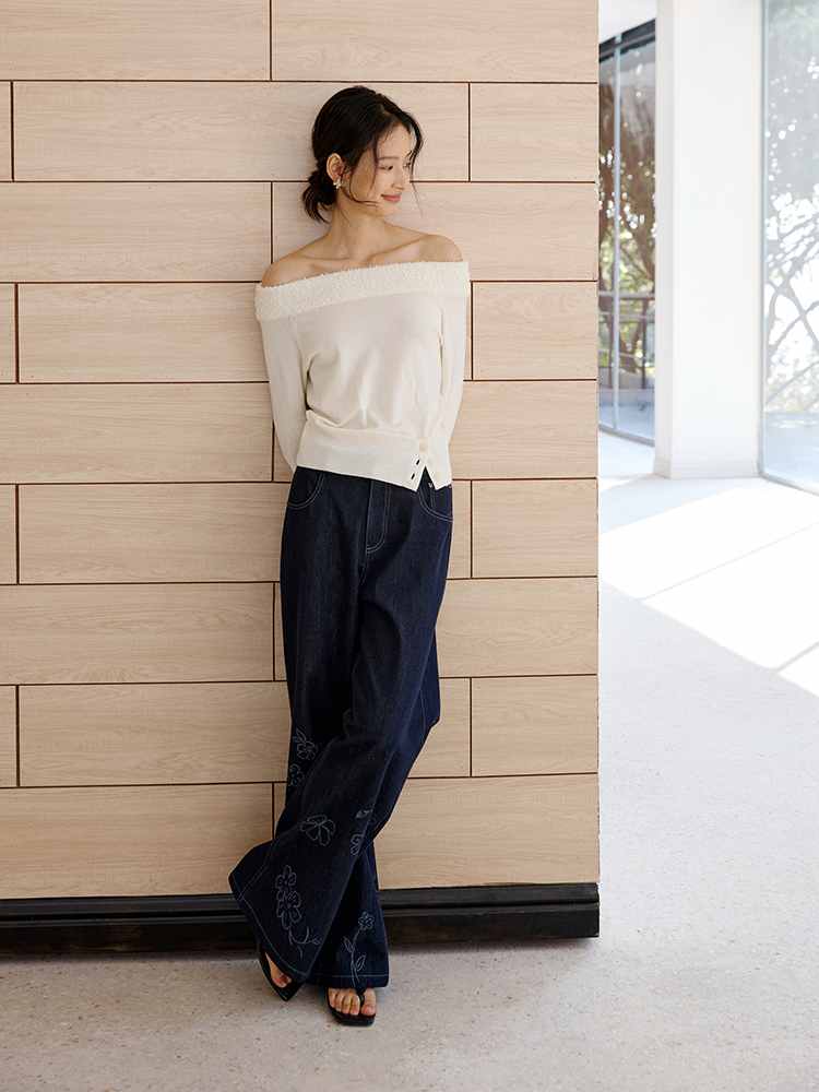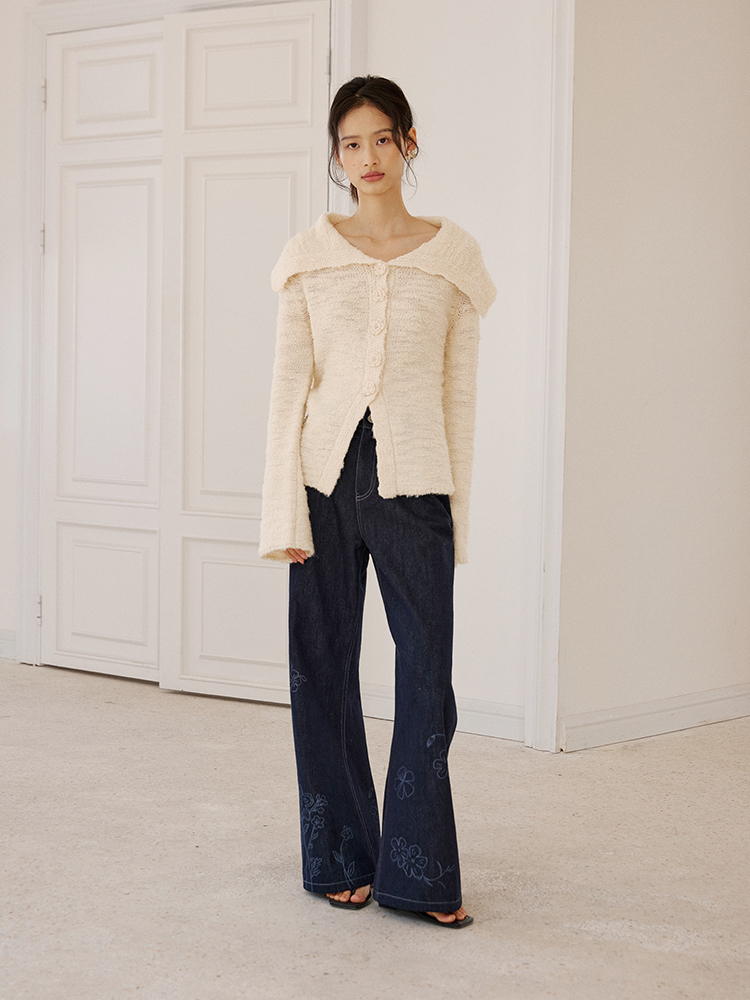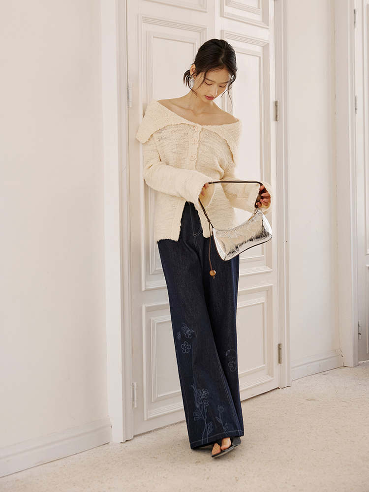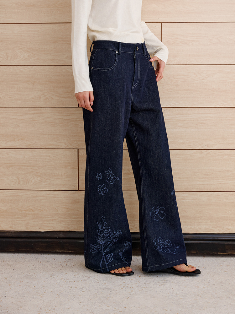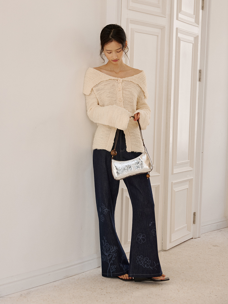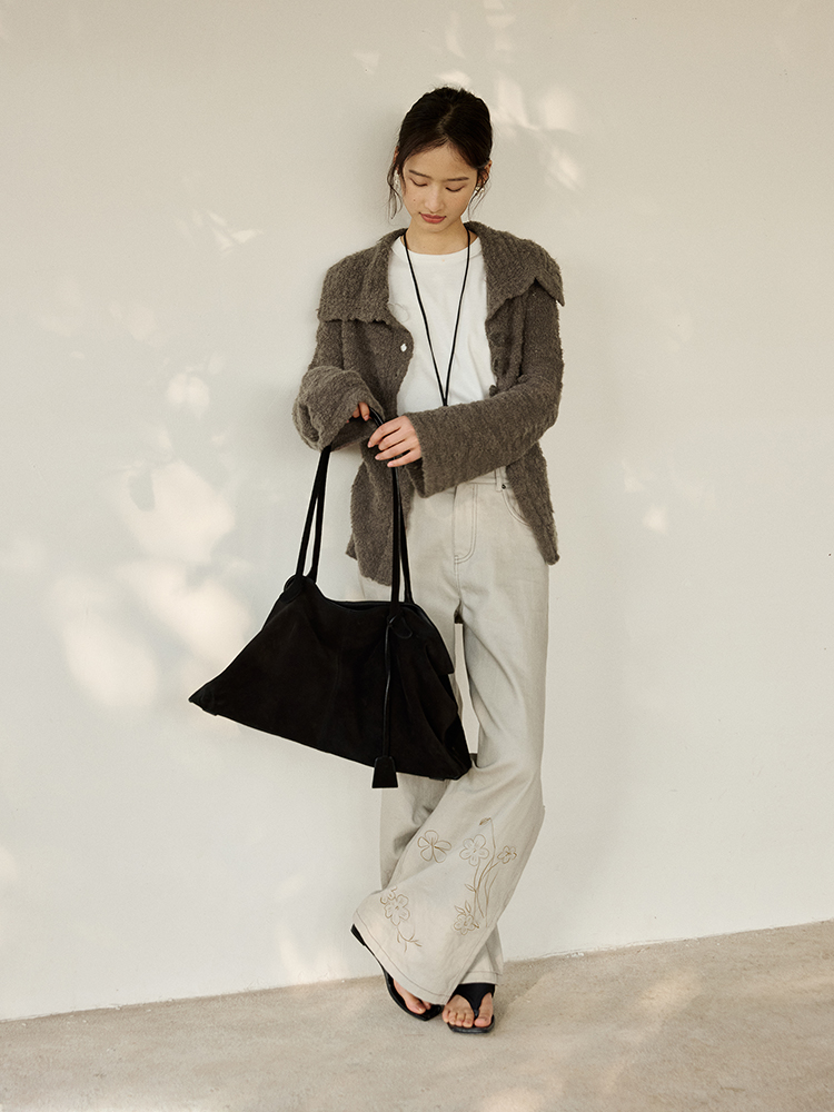 ForPoem 现货 25/SS原创设计明线装饰白描线条印花弯刀休闲裤