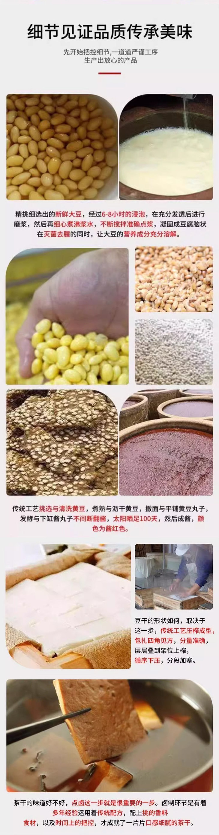 经过浸豆、磨浆、煮浆、做坯、包布、压榨、卤味等多道工序⚙️
