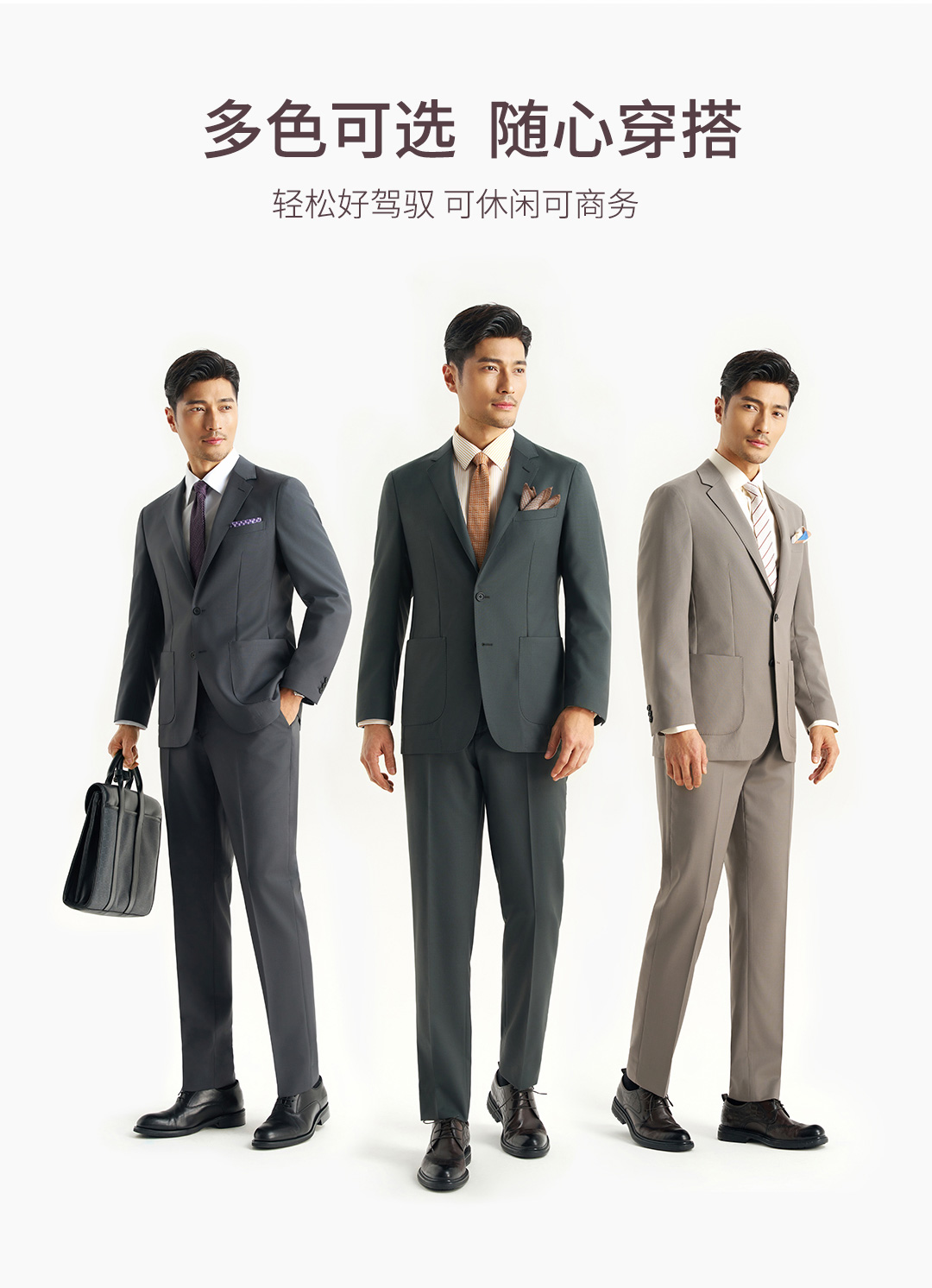 【铂金大师】绵羊毛Sorona易打理平驳领高端套西西装251Z0S516N