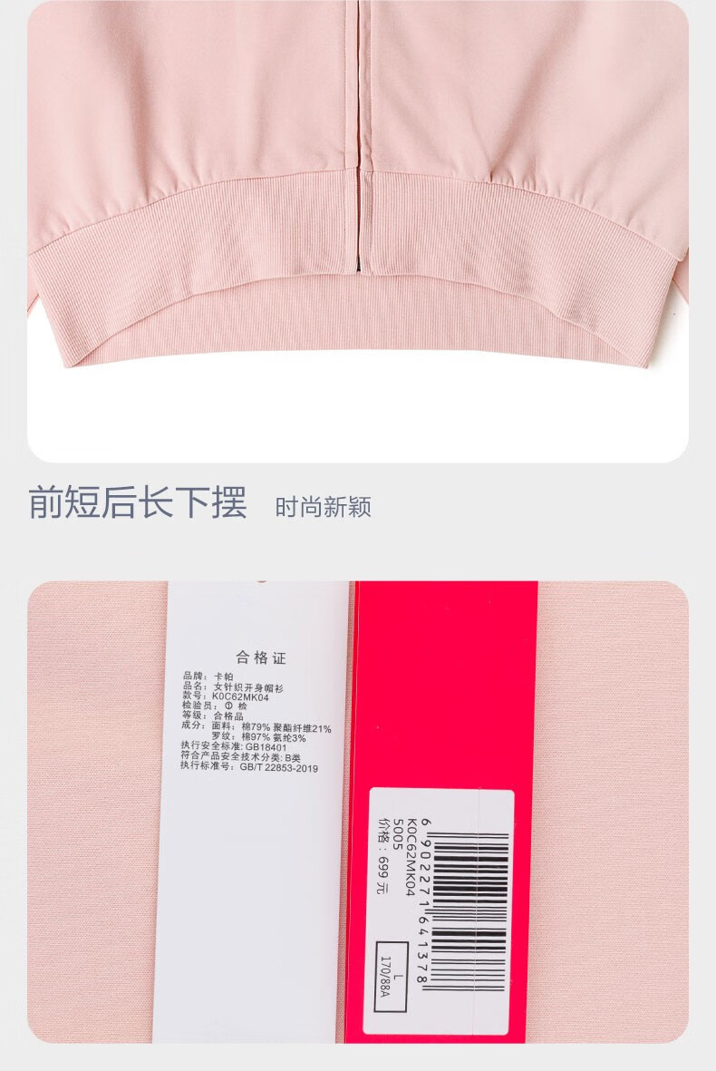 Kappa开身帽衫2022新款女短款运动卫衣休闲撞色外套K0C62MK04