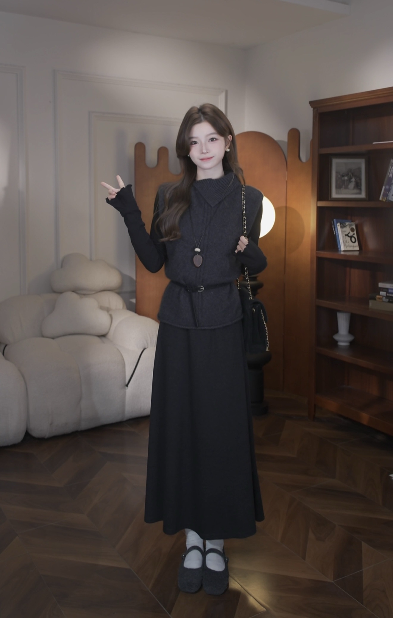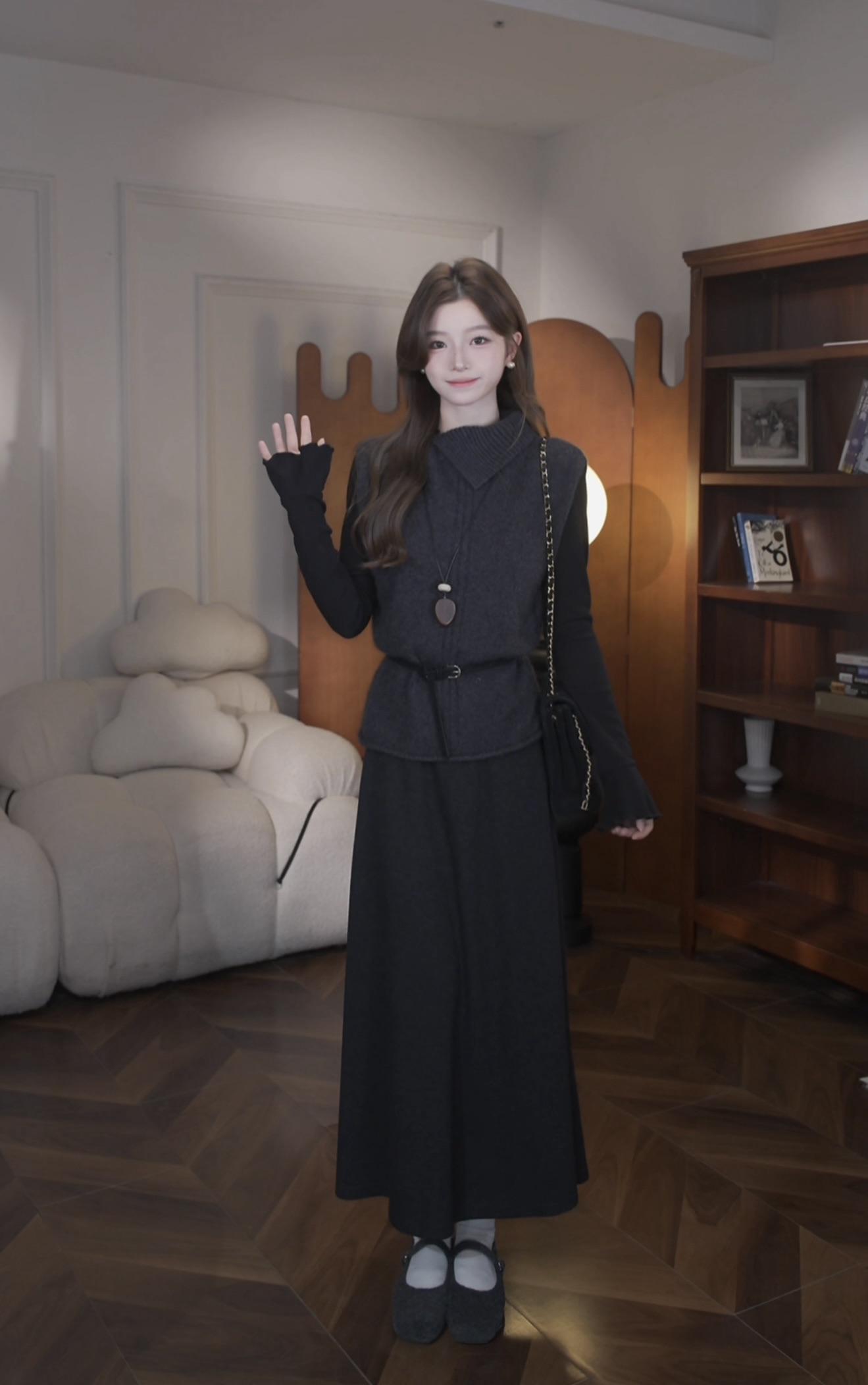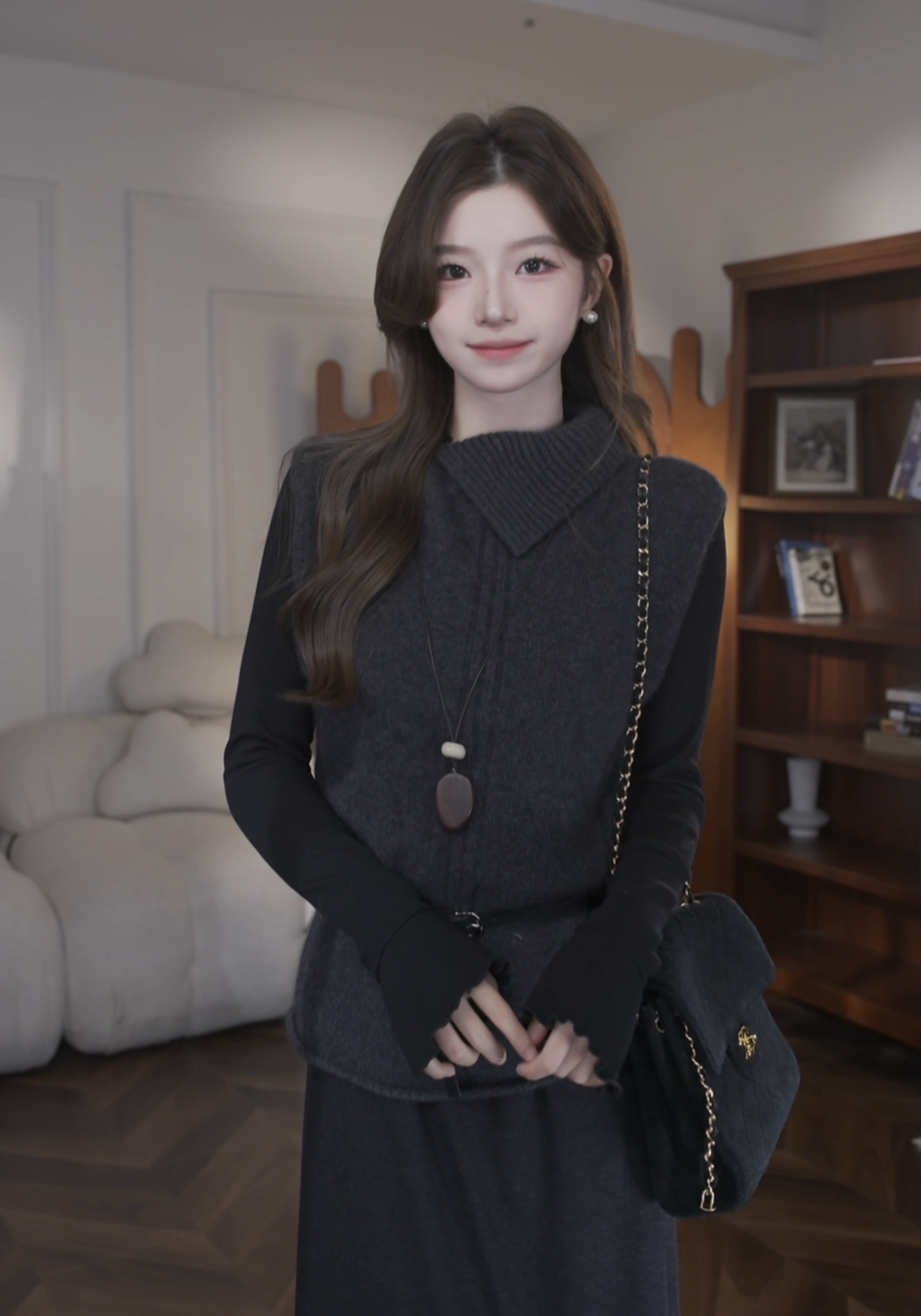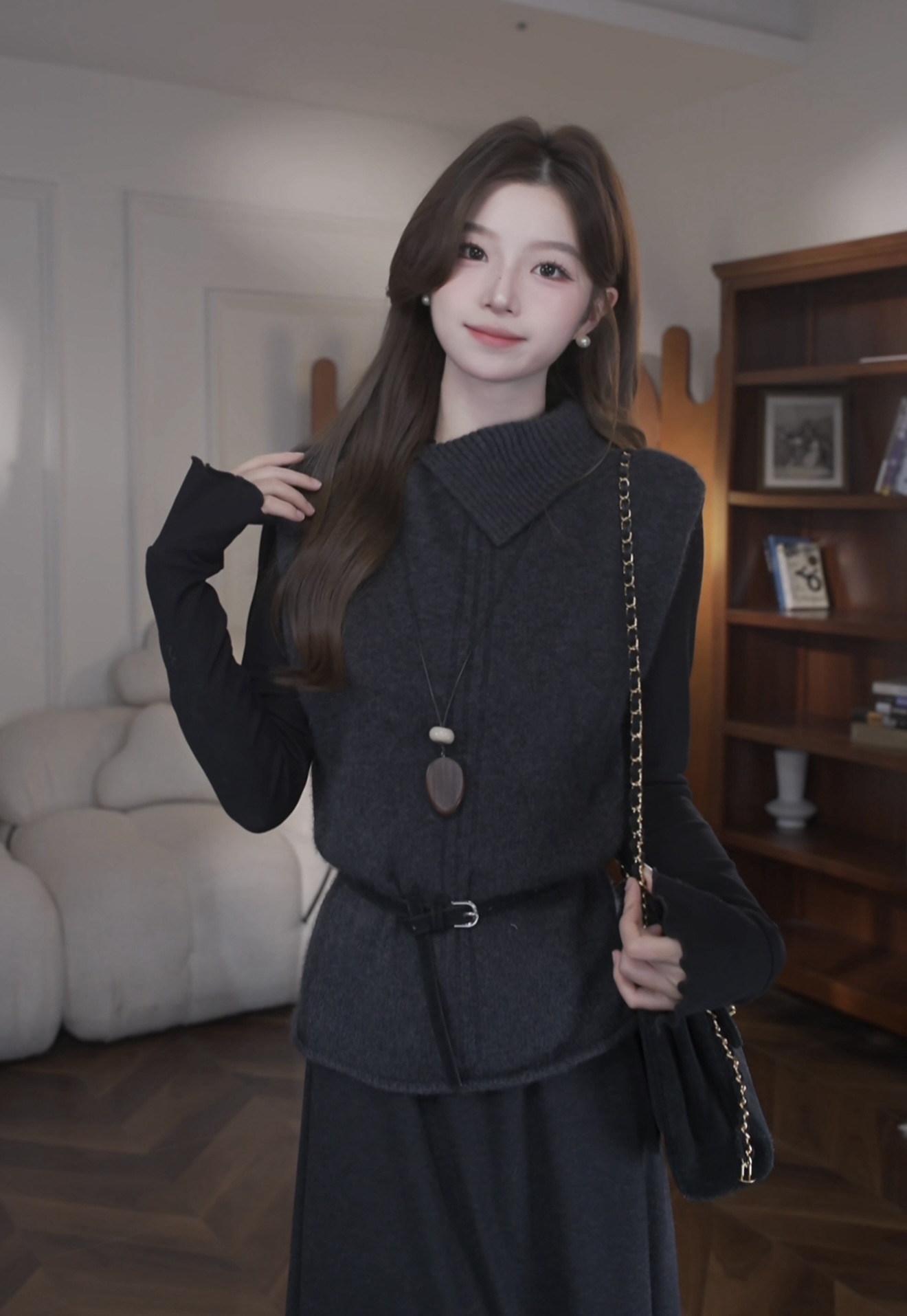 鹿向南【梦境拼图】秋冬新款韩系高级感穿搭显瘦马甲毛衣套装女