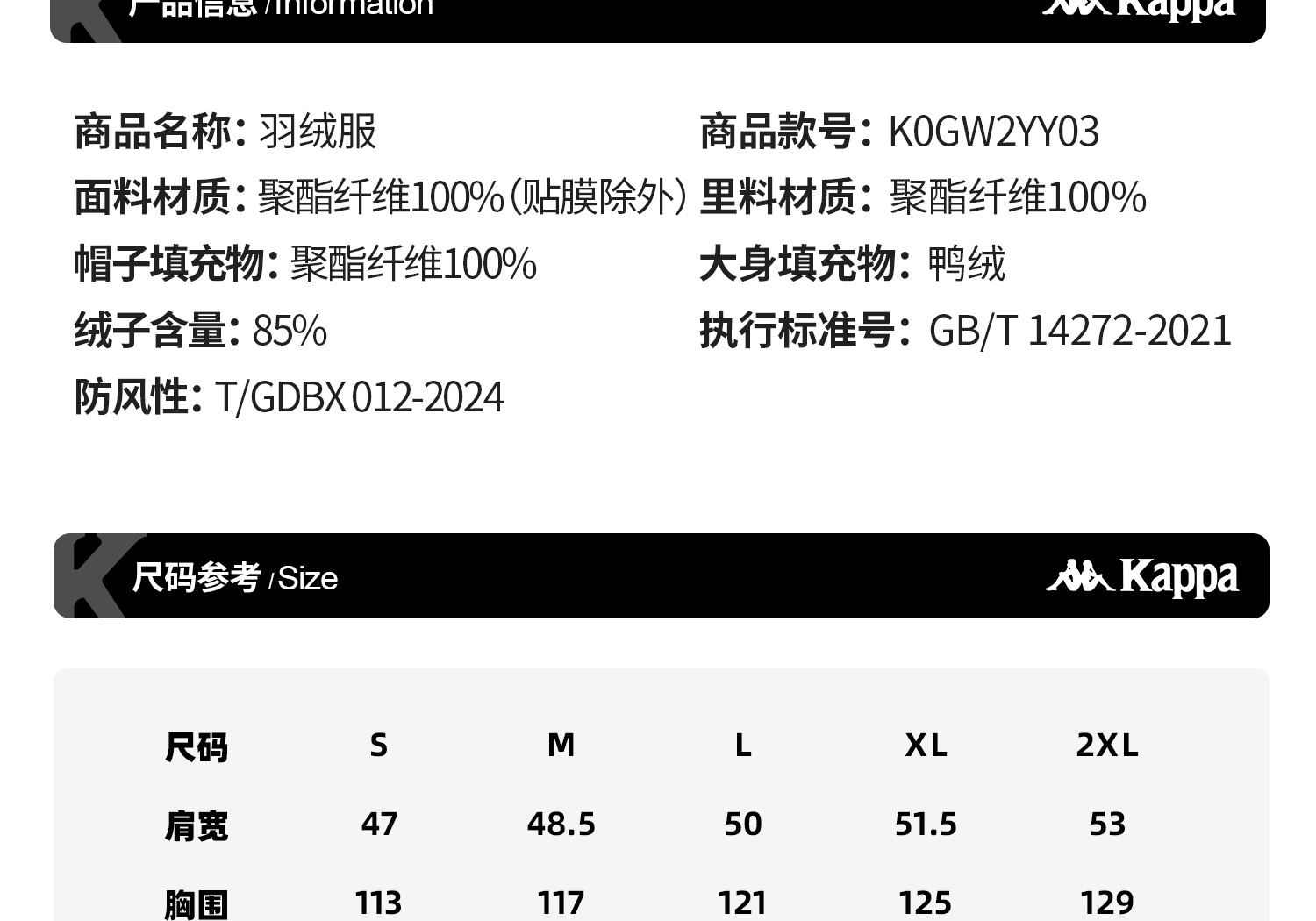 Kappa 连帽羽绒服女2025冬季新款加厚保暖防风运动外套K0GW2YY03