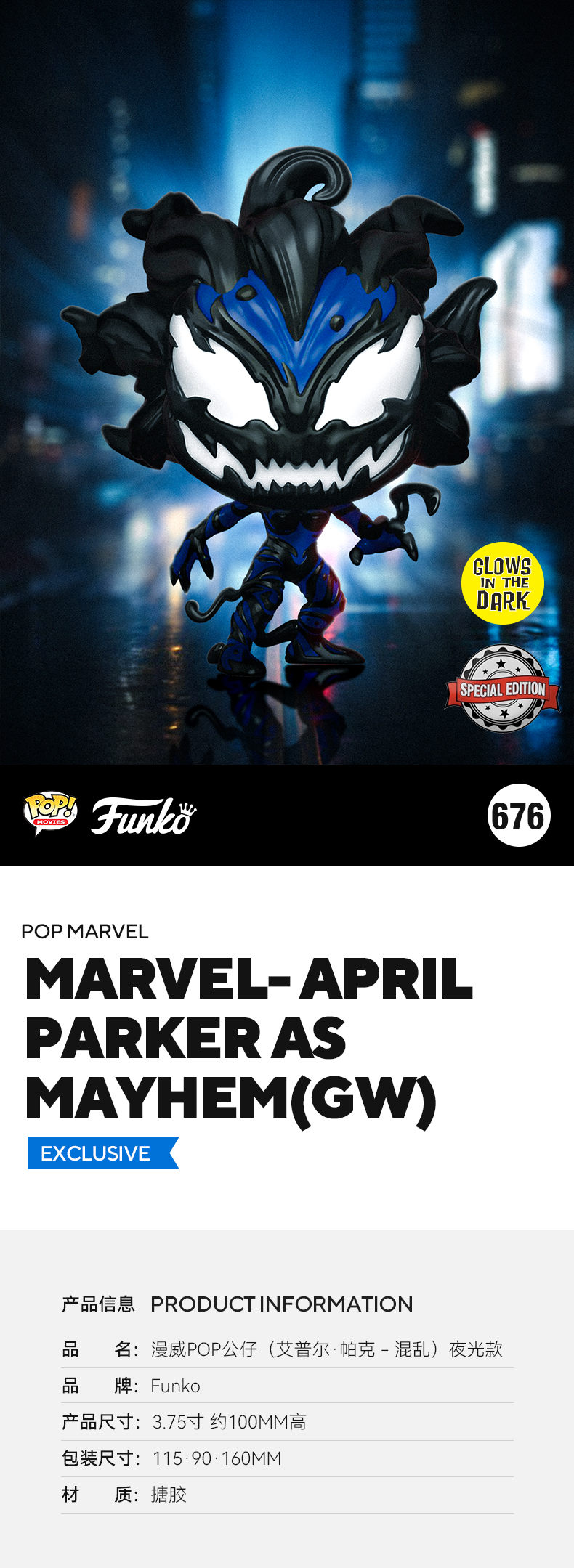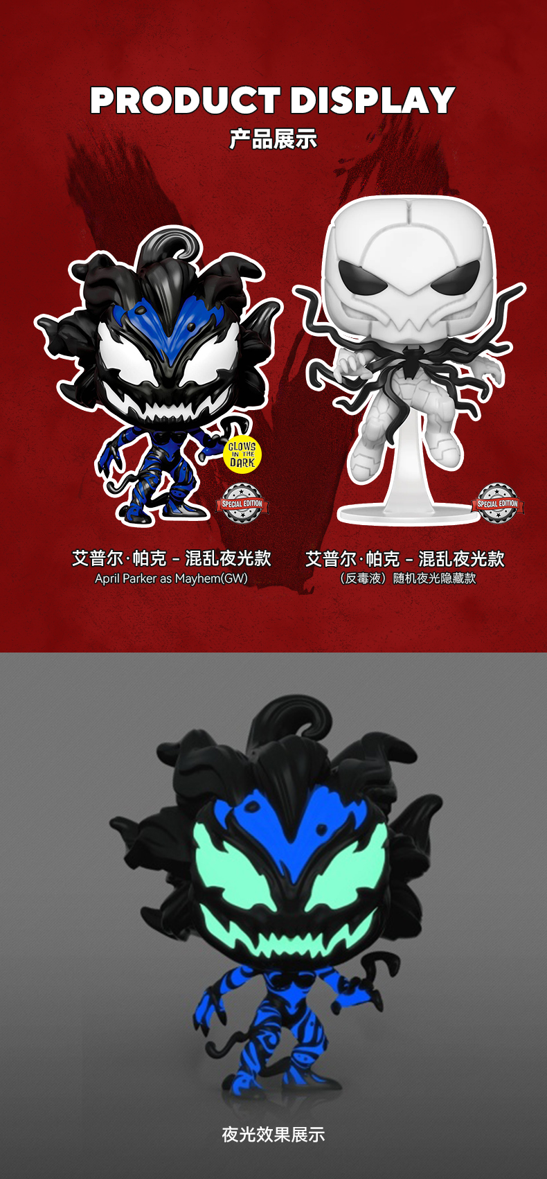 Funko POP! Marvel April Parker as Mayhem 美漫 漫威英雄 毒液艾普尔·帕克夜光限定款公仔手办摆件 58397