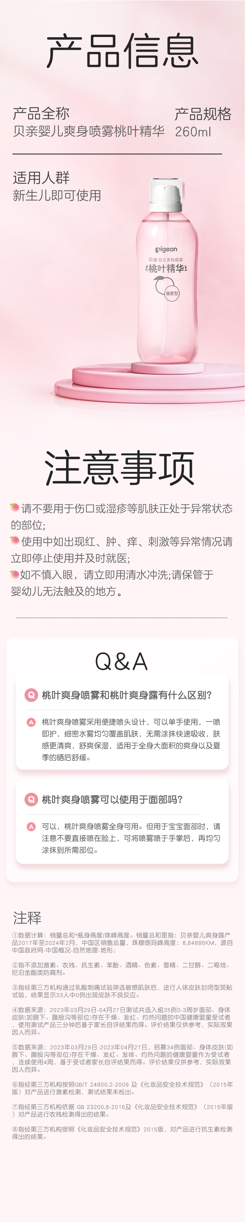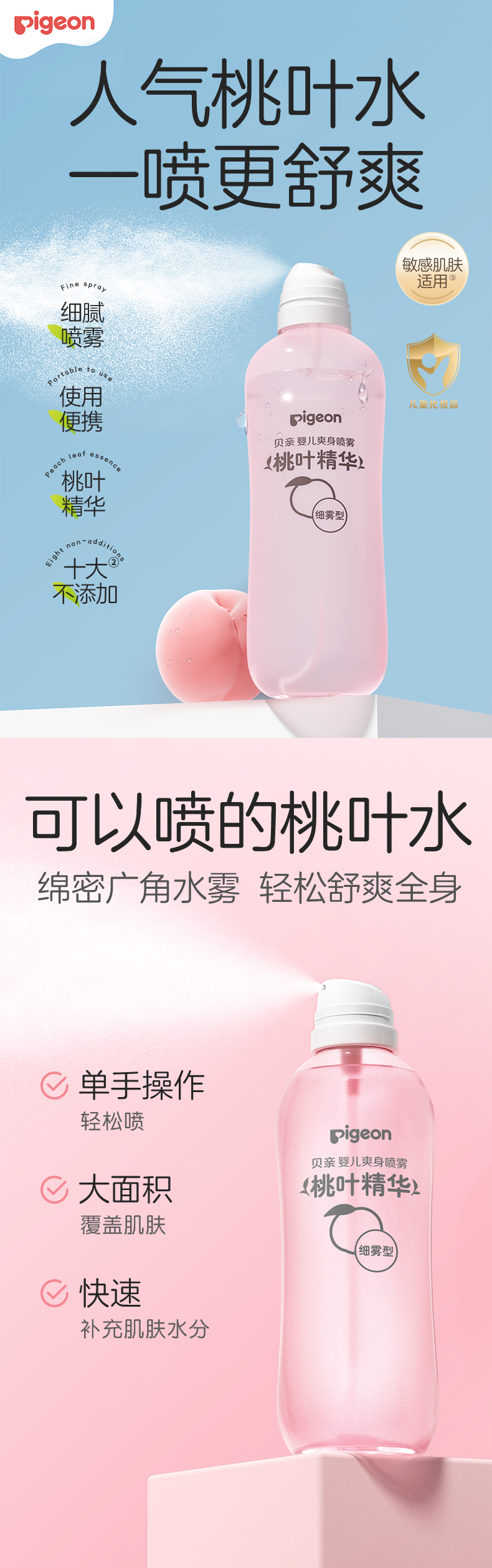 【官方自营】奚梦瑶推荐!PIGEON/贝亲婴儿桃叶爽身喷雾260ml