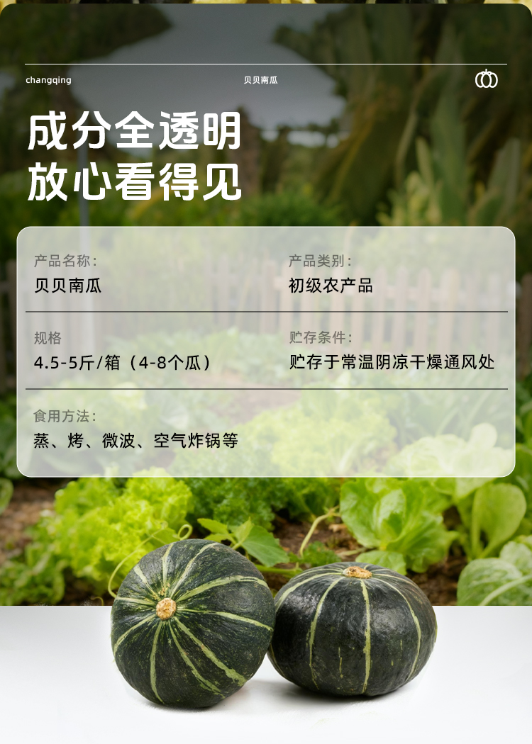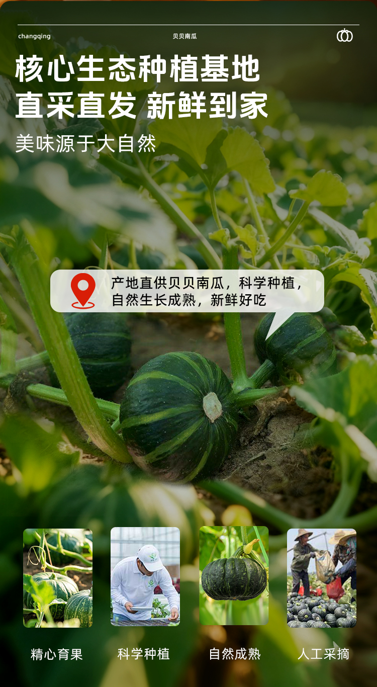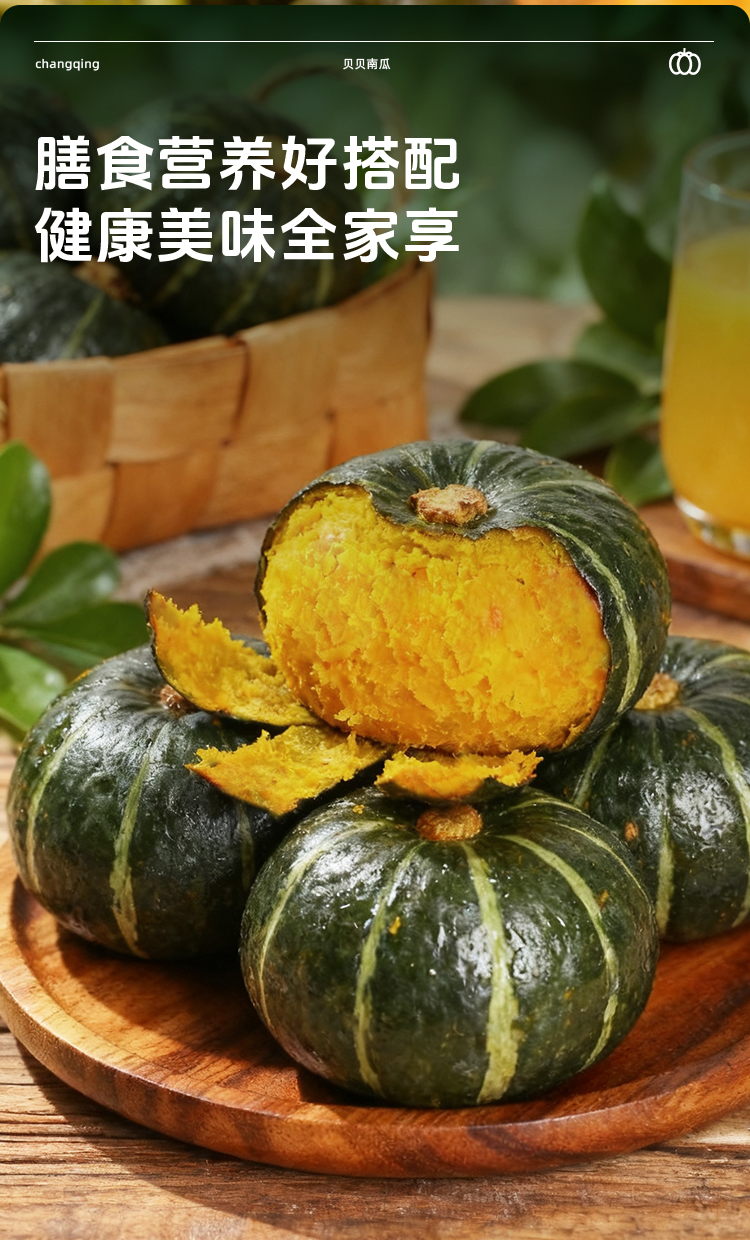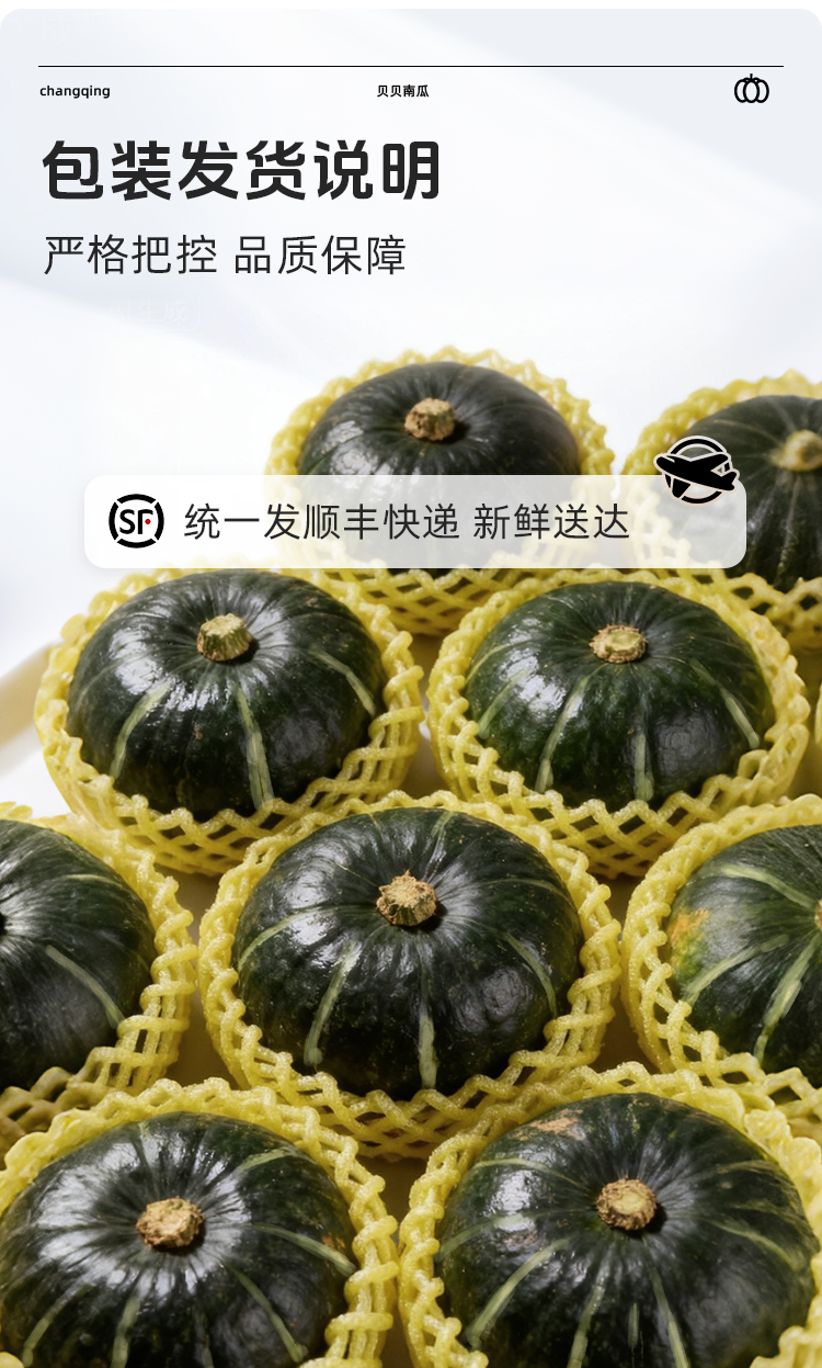 【顺丰发货】长轻 贝贝南瓜 4-4.5斤/箱(4-8个果) 当季新瓜现摘现发坏果包赔