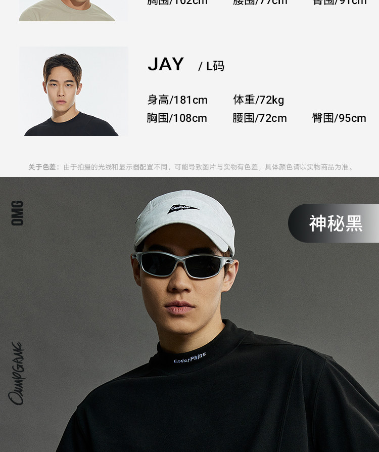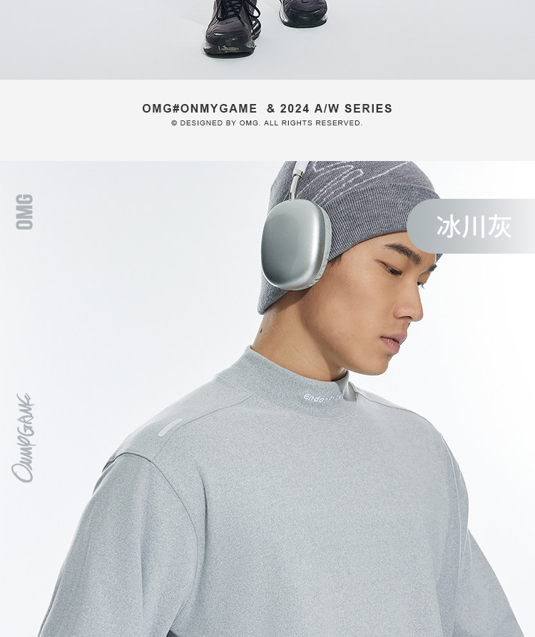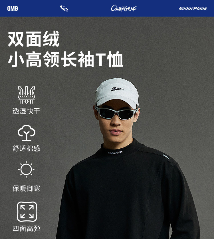 OMG运动 【小高领绒衫】冬季印花加绒长袖t恤内搭打底衫加绒加厚