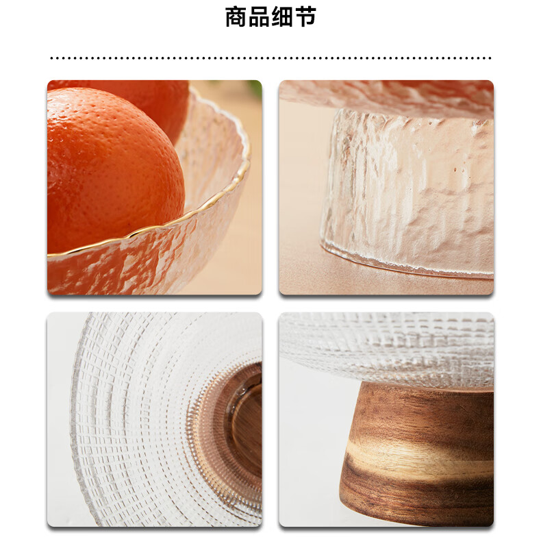水果盘零食摆放盘高脚果盘金线玻璃高脚果盘