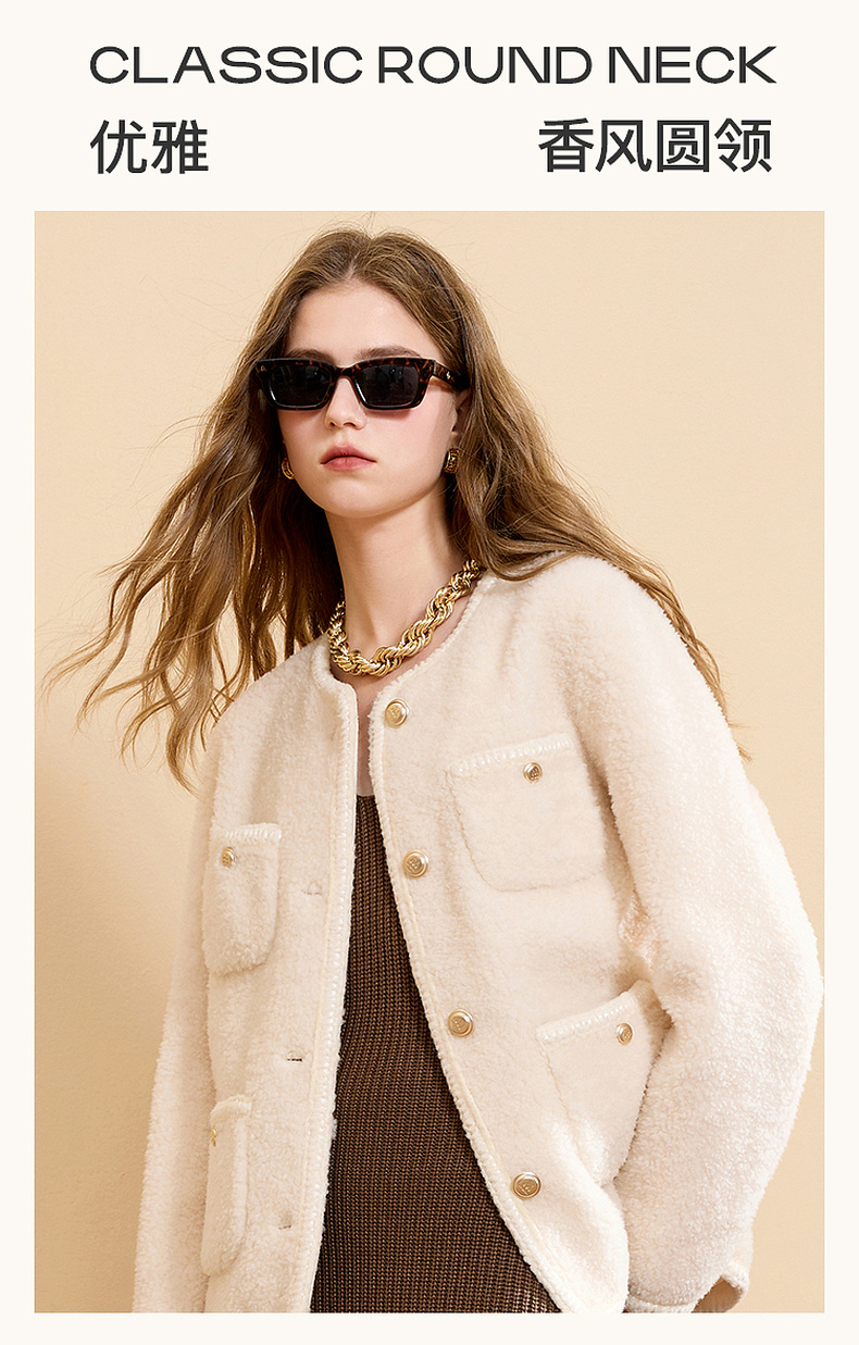 【100绵羊毛瘦瘦皮草】三彩2025冬季新款织带毛毛外套优雅M