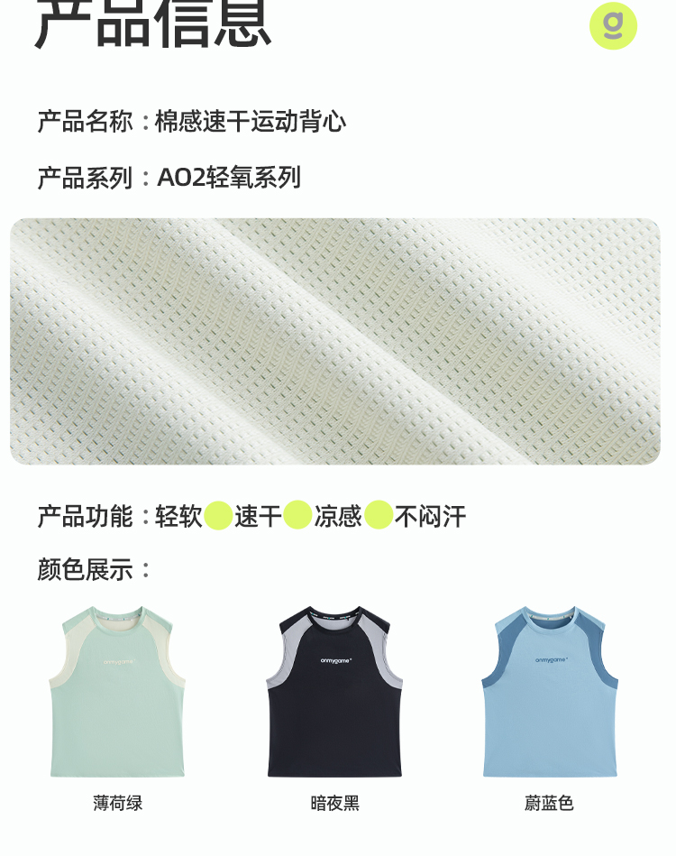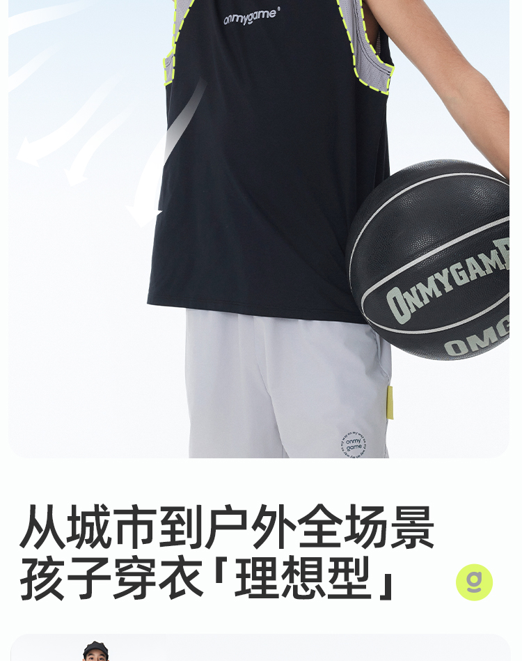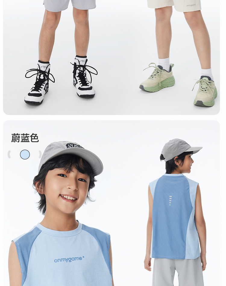 onmygame【棉感速干】男童运动背心外穿儿童速干上衣2025年夏季