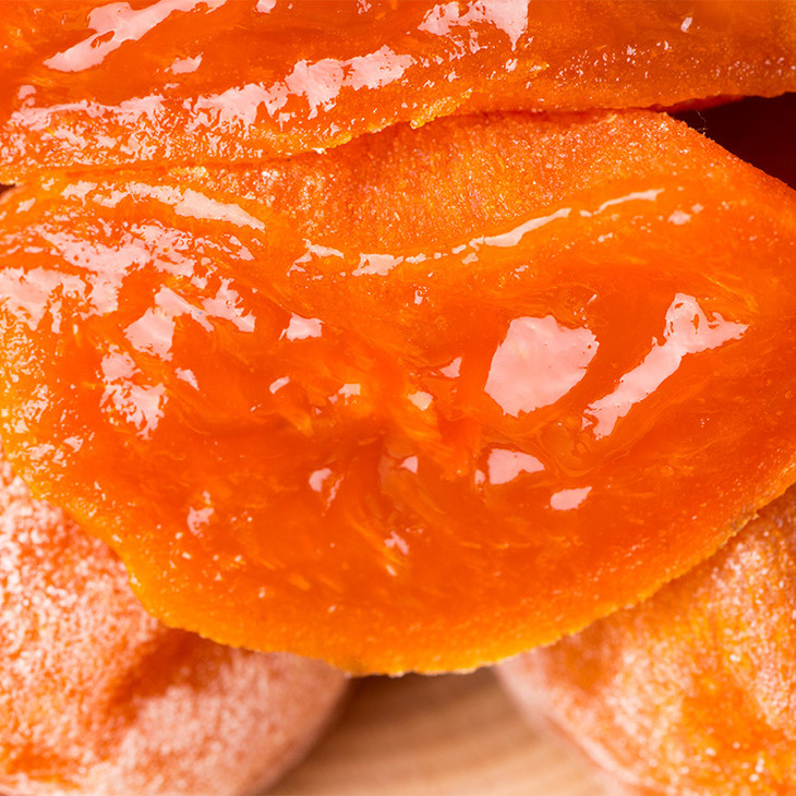 喜欢吃干一些的,更加有韧劲的柿子可以拍微霜流心柿饼