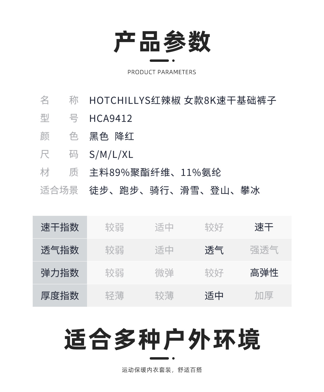 HOTCHILLYS热椒户外女8K磨毛运动登山抑菌速干保暖长裤HA9412