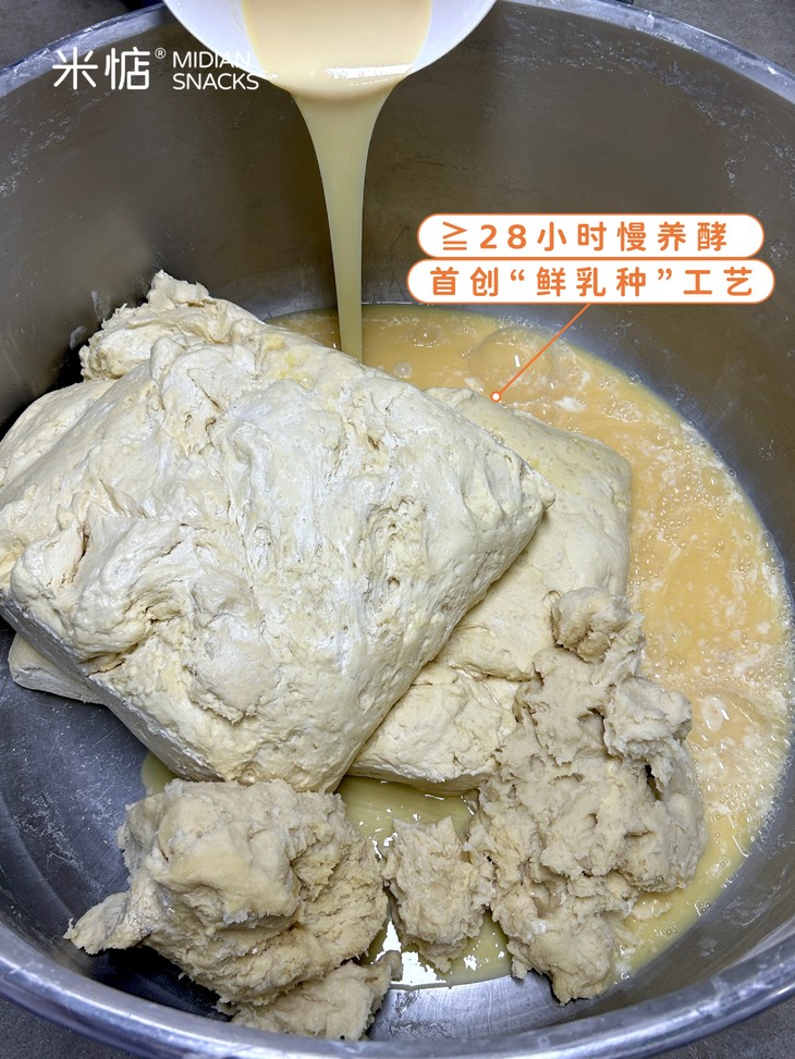 🔸首创“鲜乳种”吐司工艺 『慢的,才是鲜的』 ≥28小时的慢养酵 用时间代替添加剂⏰ 这样做出来的吐司更具有浓郁的鲜奶风味 组织细腻口感绵密,轻轻一拉扯像云朵般松软 区别于传统老面和商业酵母吐司🙌 鲜乳种吐司气孔均匀细腻 工艺也因此其含水量更高 绵软✔湿润✔不易干✔口感✔得以更好的保留