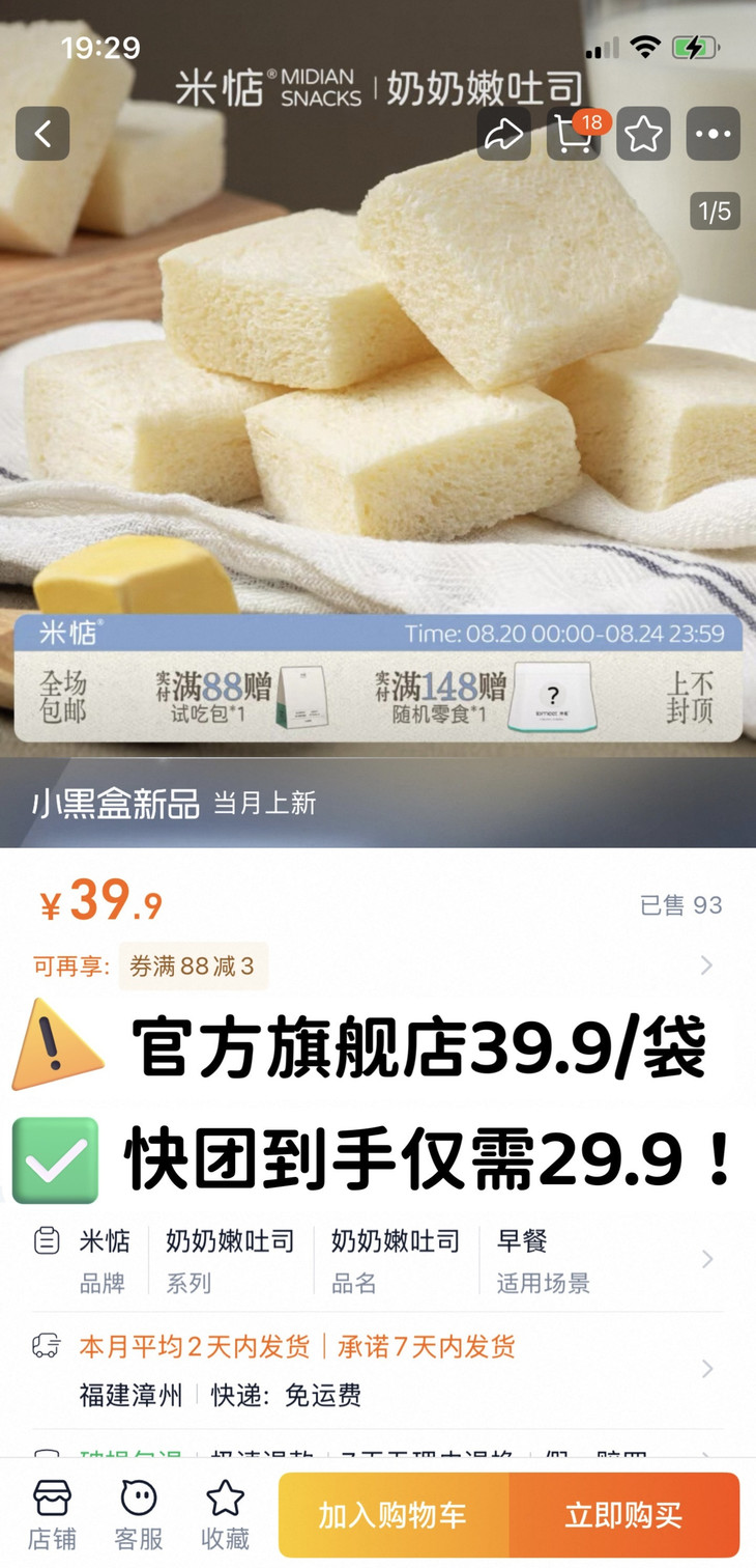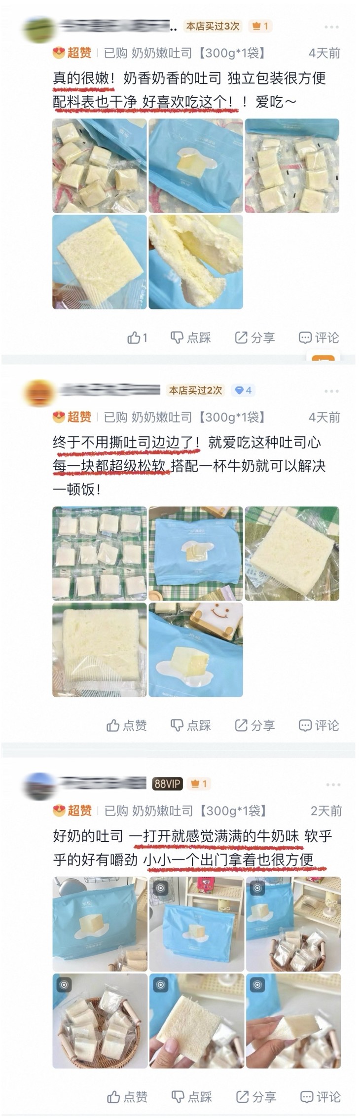 奶奶嫩吐司的出现弥补短保吐司存在的问题 还在各个指标上做到了最优化✅ 保质期延长至「30天的赏味期」 0️⃣香精0️⃣色素0️⃣添加剂0️⃣方式脂肪酸 选用天然的,新鲜的伊利巴氏杀菌乳揉面🥛 开袋就能闻到的奶香,每一口都是极致松软 给自己给孩子都要选择更健康更安心的~