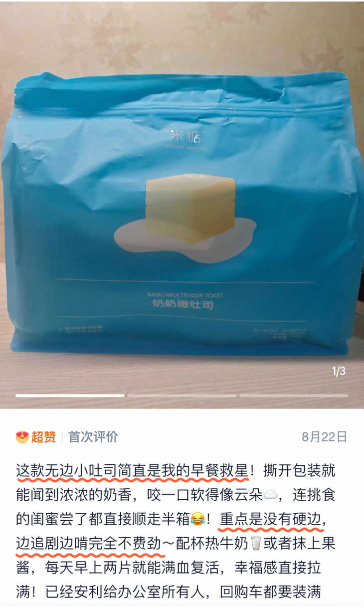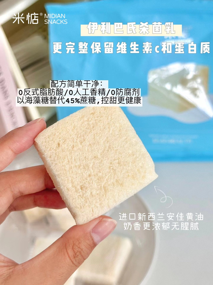 家里有👶娃的都懂! 小朋友吃吐司总爱啃软芯留硬边😰 我们创新了迷你无边吐司 现在直接省去撕边烦恼 虽然变小了,口感反而更佳夯实湿润 手指轻轻一按,软得陷进去 一松手,又慢悠悠弹回来 入口即润不干噎,浓郁奶香不腻口 没有边角料的粗糙,保留中间最软嫩的芯~ 不同于市面上的大片吐司✋ 迷你吐司解决了大片吃不完变干硬的难题 独立包装,随吃随拿,让小朋友吃也能避免浪费