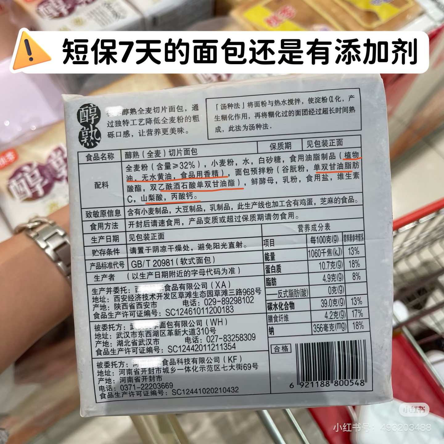 早八打工人和给孩子备餐的家长🥞 都会尽量选择配料表干净短保的吐司 保质期不至于太短,也能够在冰箱储存2-3天 相比元素周期表的面包确实是更好的选择 但是细看还是会有容易忽略的添加剂 果葡糖浆、起酥油、丙酸钙..... 短保≠完全无添加🙅🏻♀️ 无法独立包装也是质变的一大问题 水分流失&细菌质变&不易携带统统要考虑😔