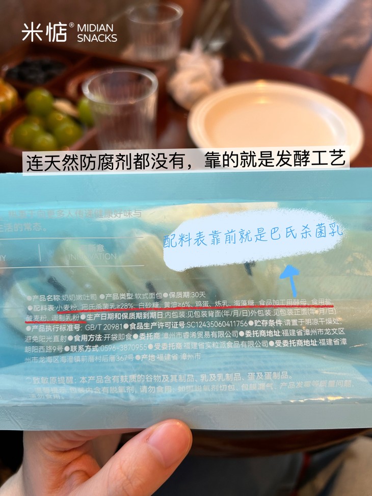 0️⃣添加防腐剂(丙酸钙,山梨酸钾含量均为0️⃣) 保质期还能保持30天的原因: ☁慢养发酵 用时间代替添加剂,28小时慢养慢发酵,手工慢养自然发酵,使面团和水分的合作更佳充分,从而让面团的熟成度更佳完好 ☁酸麦粉 创新食品防腐保鲜技艺,通过发酵产生乳酸,醋酸等有机酸,这些酸性物质能有效抑制有害微生物的生长,即能防腐保鲜,又能保持食材本身的味道 ☁氮气锁鲜 每一个都是独立包装内置脱氧剂,隔绝食品与空气接触,达到保鲜效果,让每片吐司到手都还能保持蓬松呼吸感