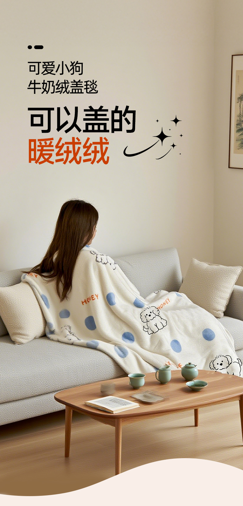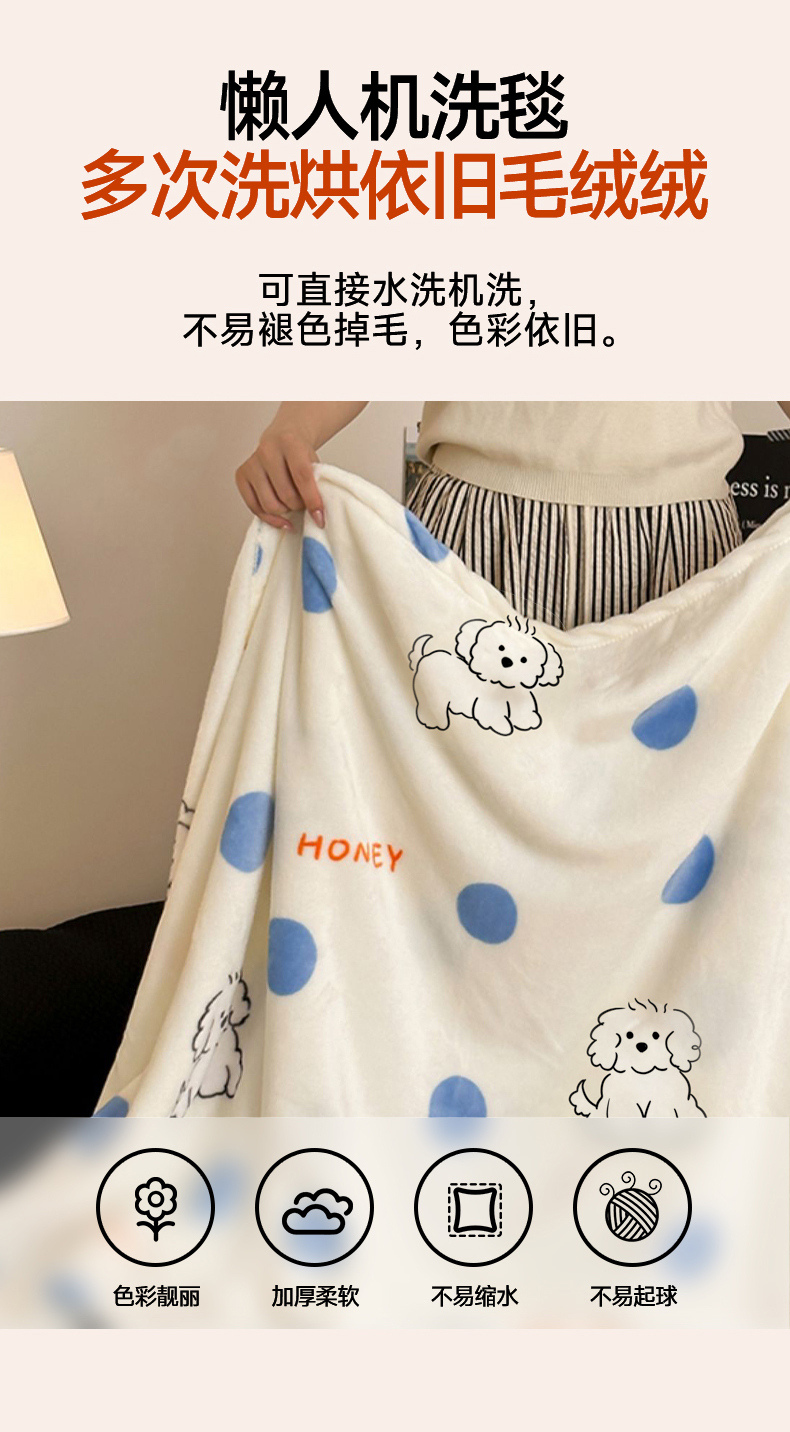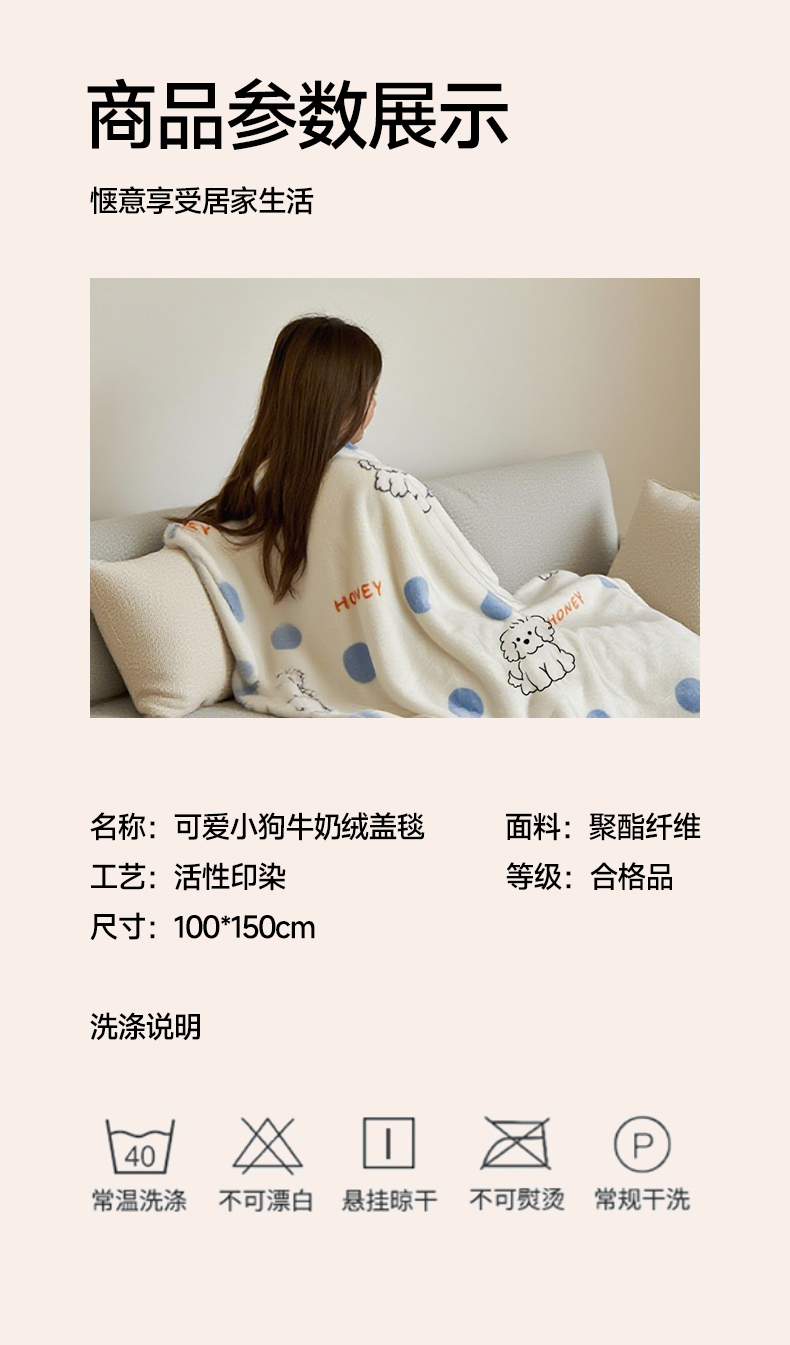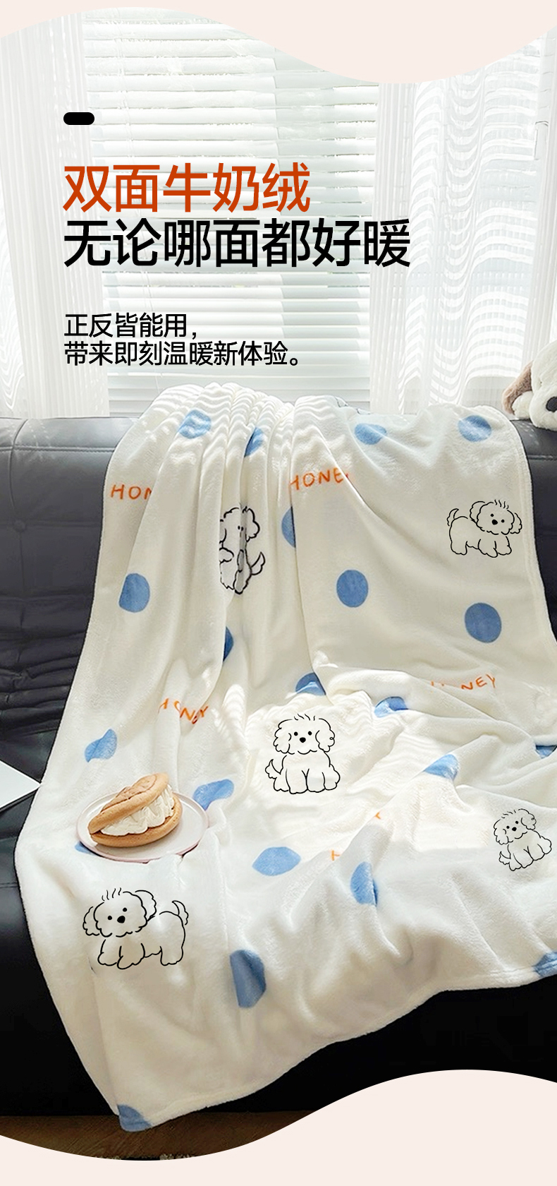 【双倍暖感】愉悦之家 牛奶绒小狗毯子 100*150cm/条 双面牛奶绒亲肤面料
