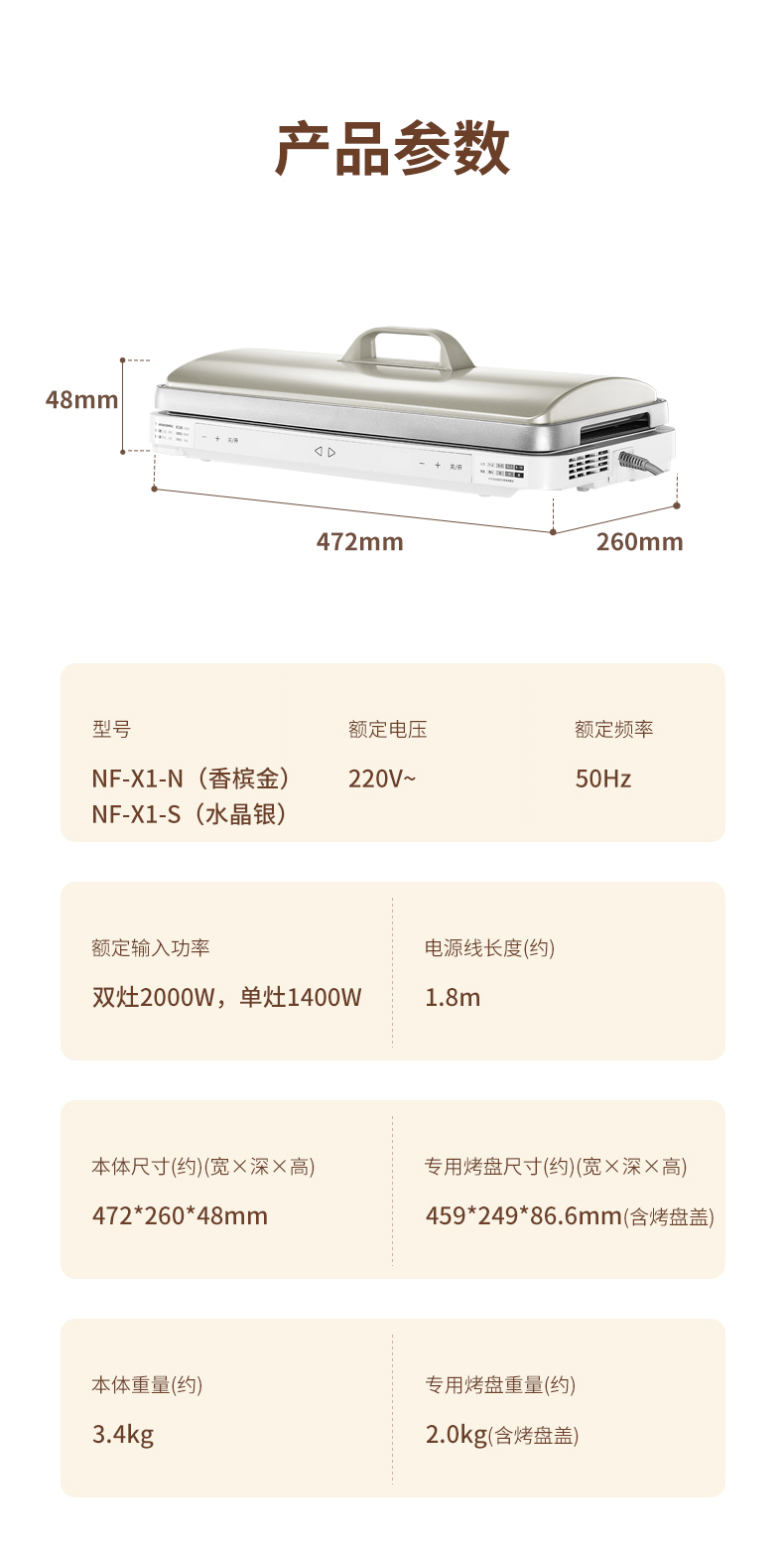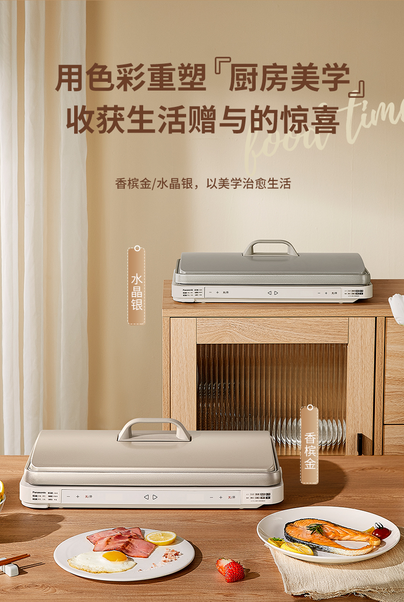 松下(Panasonic)金色 多用途锅 聚嗨盘 料理烧烤火锅一体锅 左右独立控温 NF-M1-N(标准版金色)