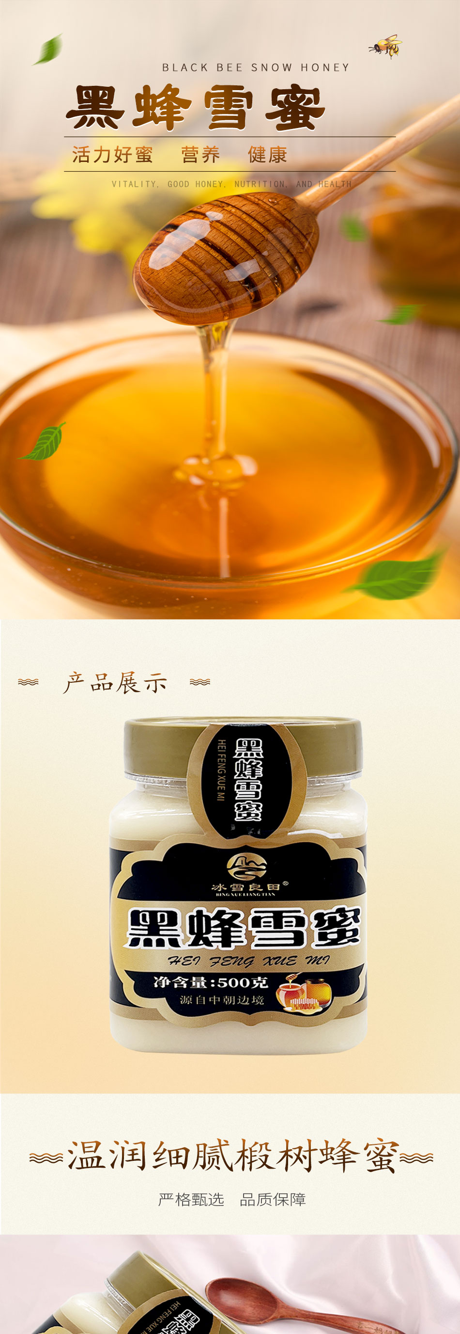 黑蜂雪蜜 天然蜂蜜 椴树雪蜜 500克/瓶
