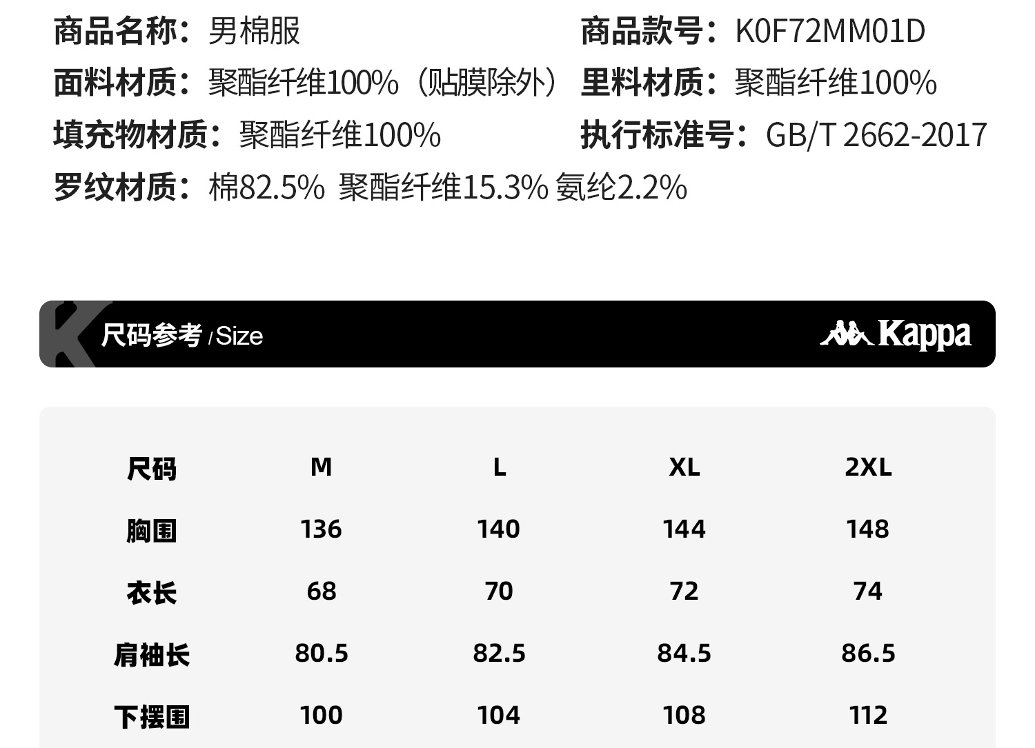Kappa卡帕背靠背棉服男士2025新款冬季加厚保暖外套运动棉衣上衣K0F72MM01D