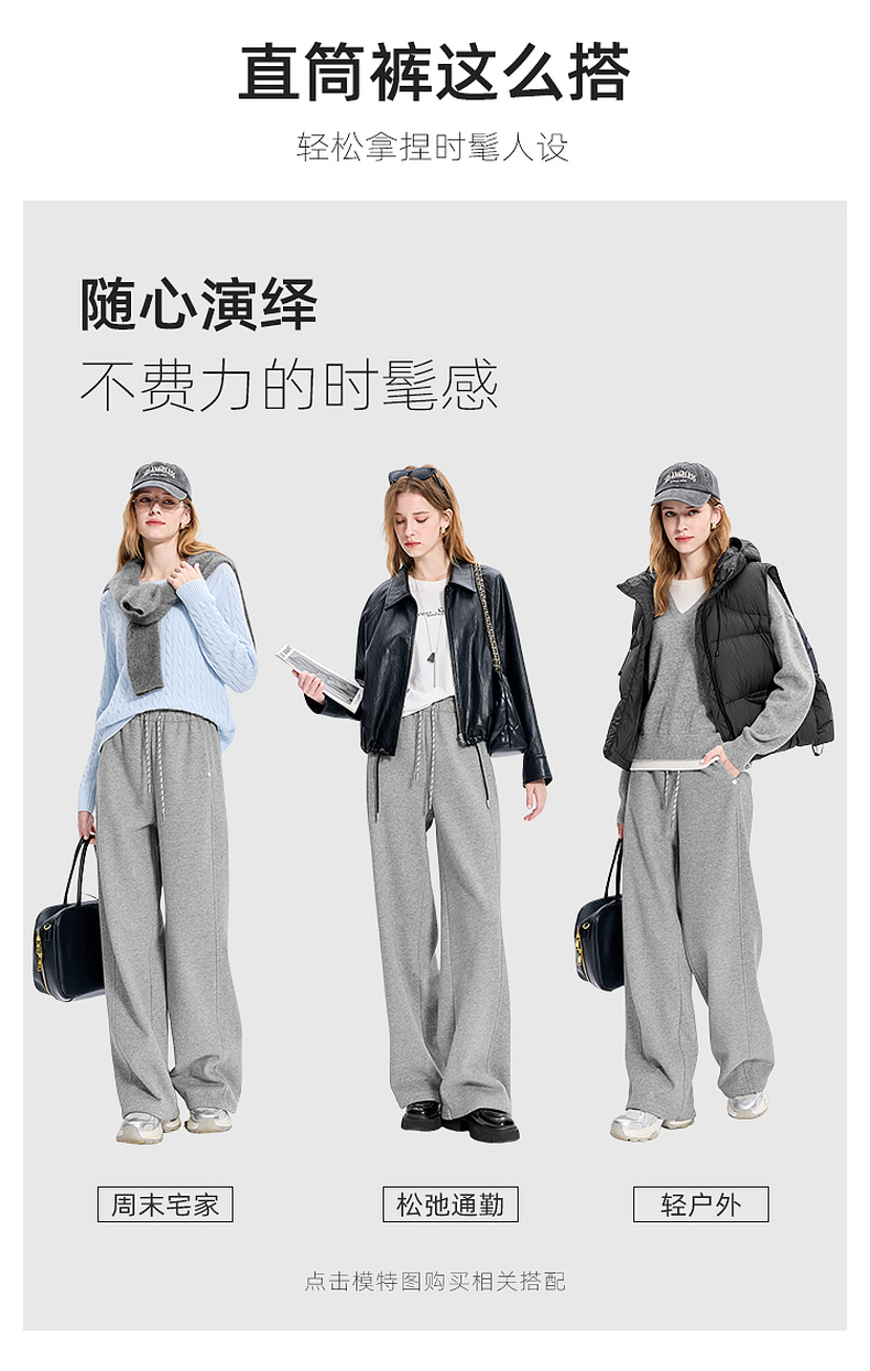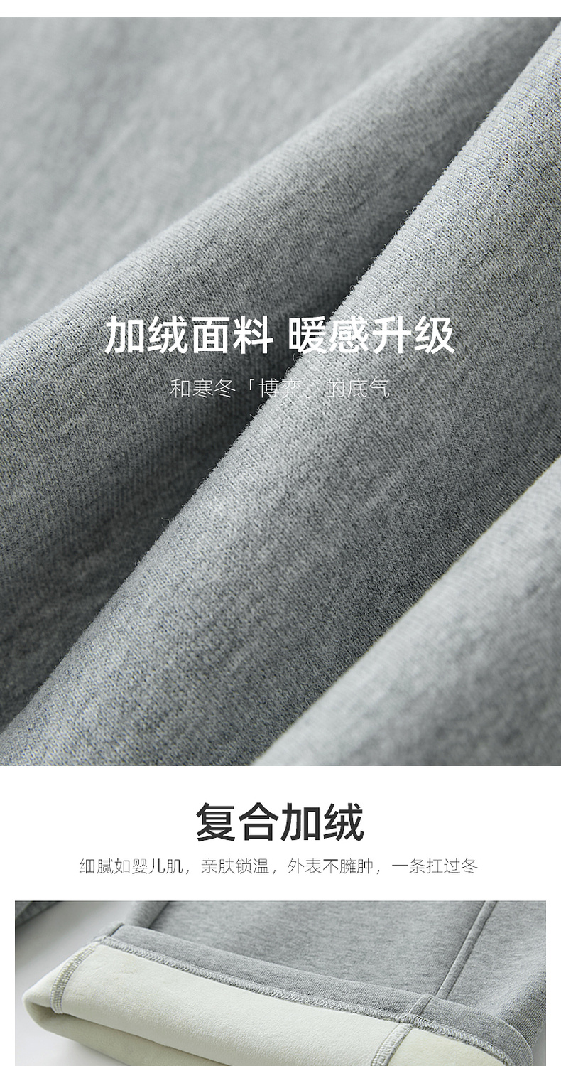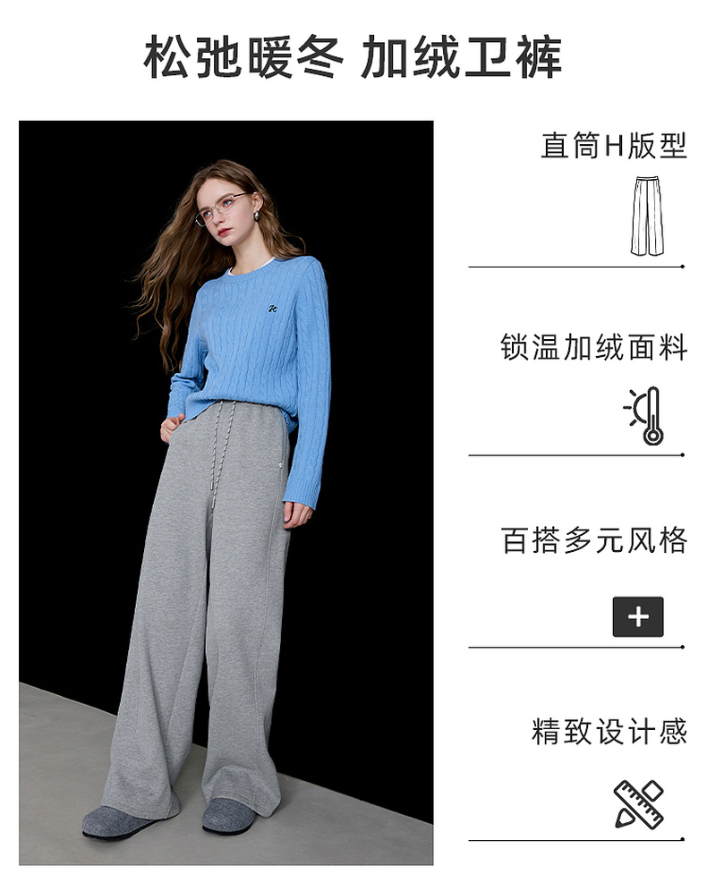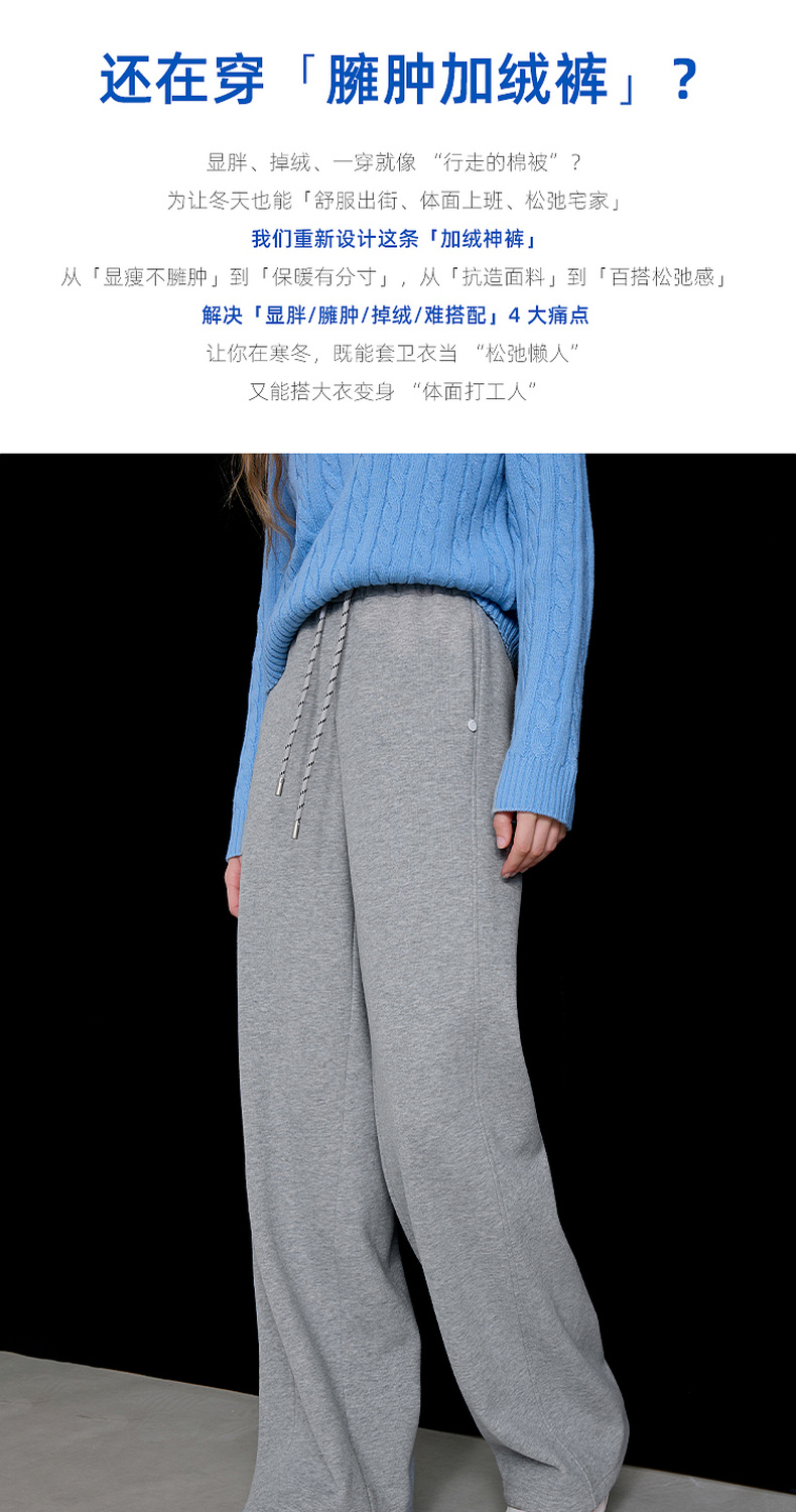 【加绒】三彩2025冬季新款保暖休闲长裤松紧腰宽松直筒裤垂感M