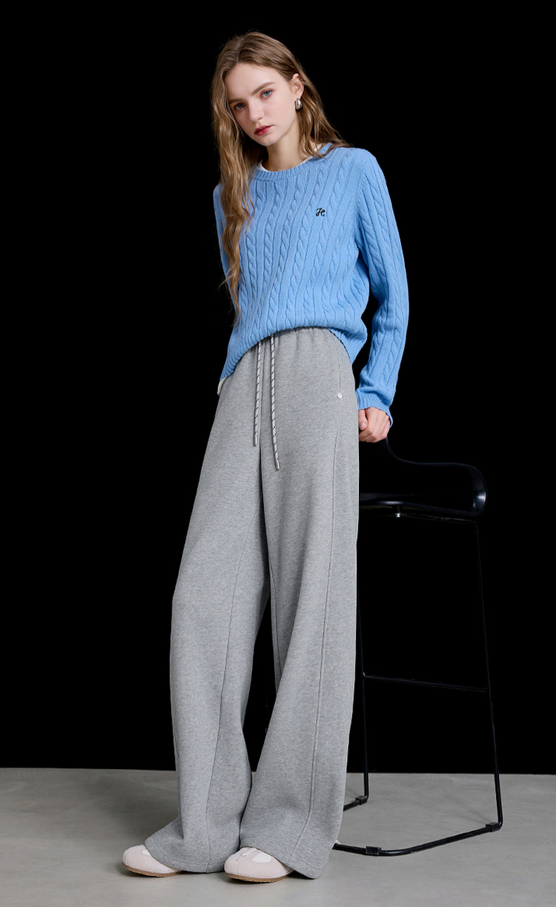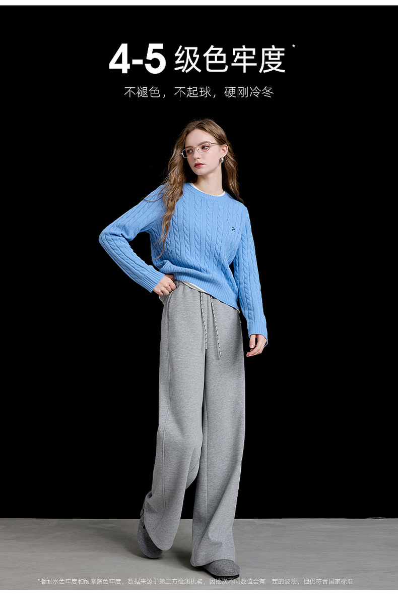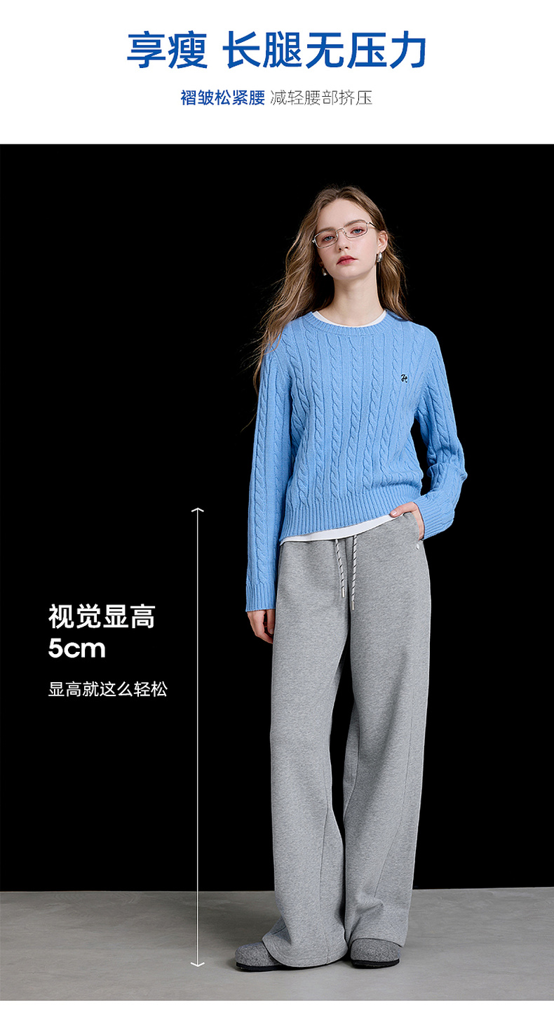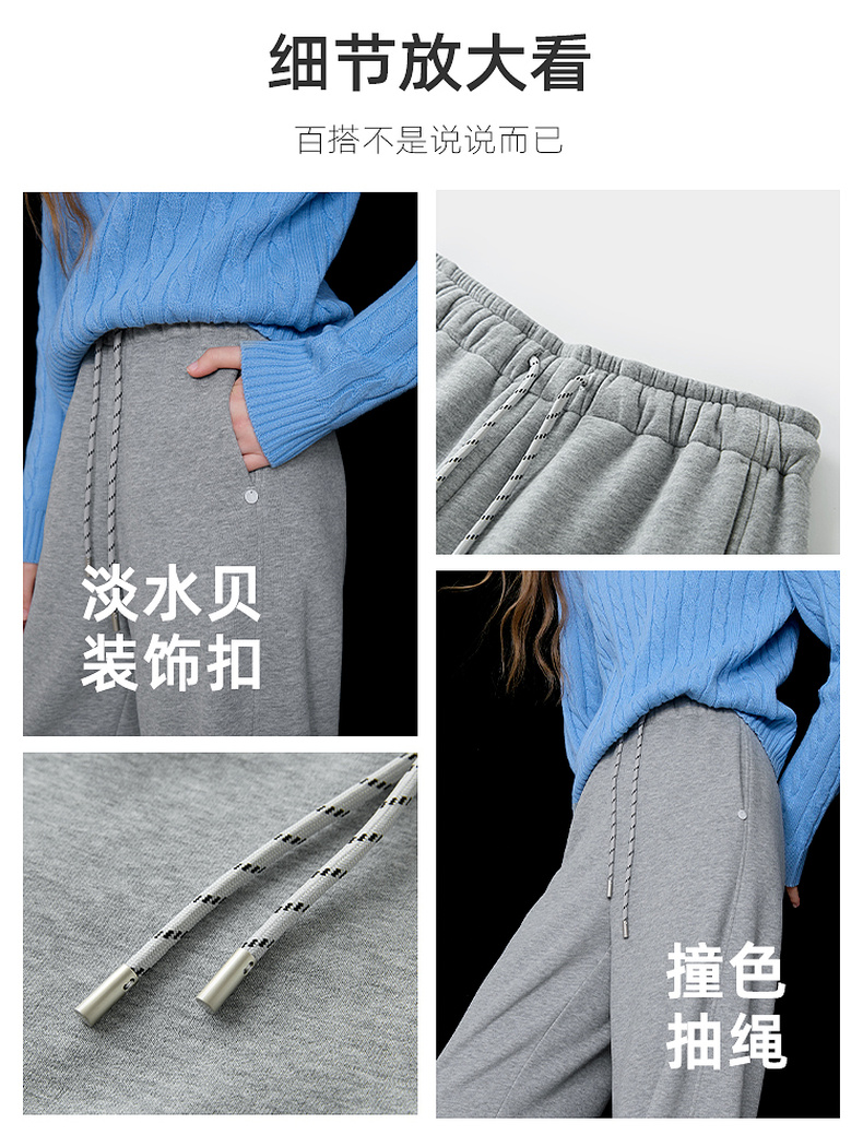 【加绒】三彩2025冬季新款保暖休闲长裤松紧腰宽松直筒裤垂感M