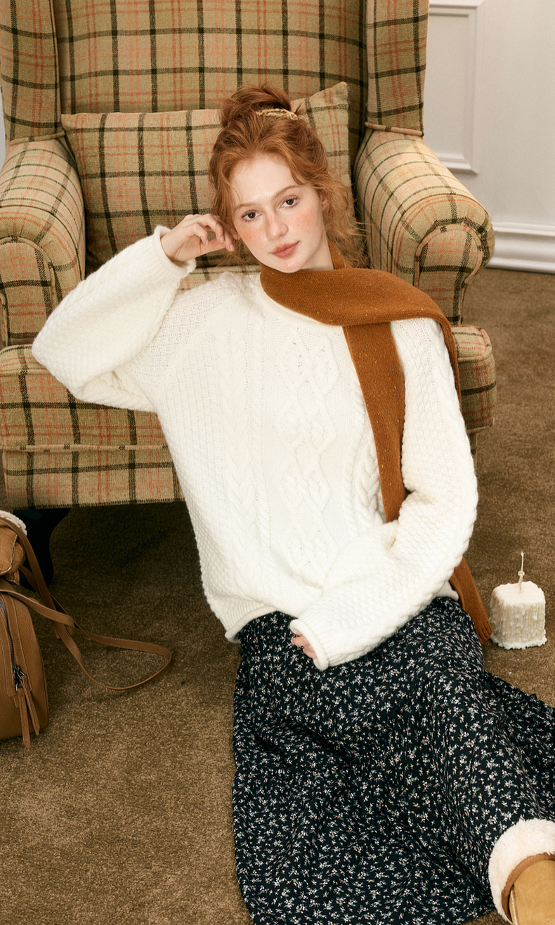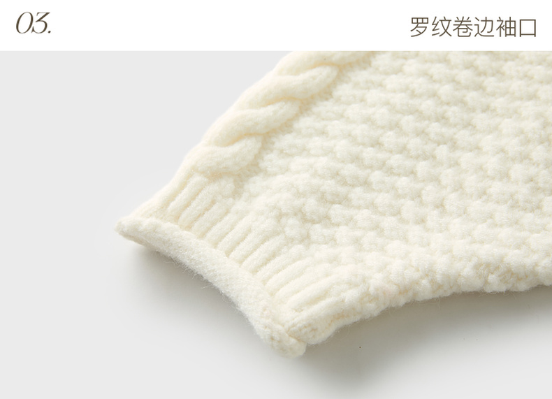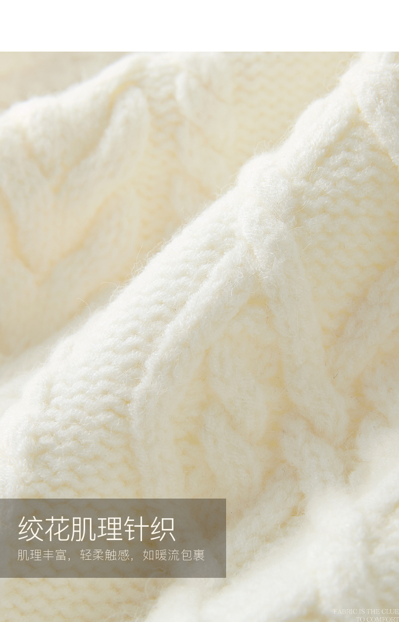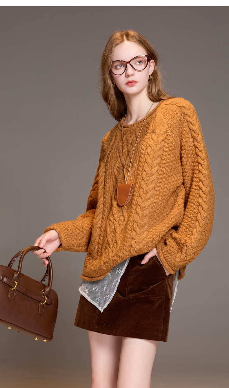 三彩2025冬季新款宽松圆领针织衫绞花肌理长袖套头衫百搭M