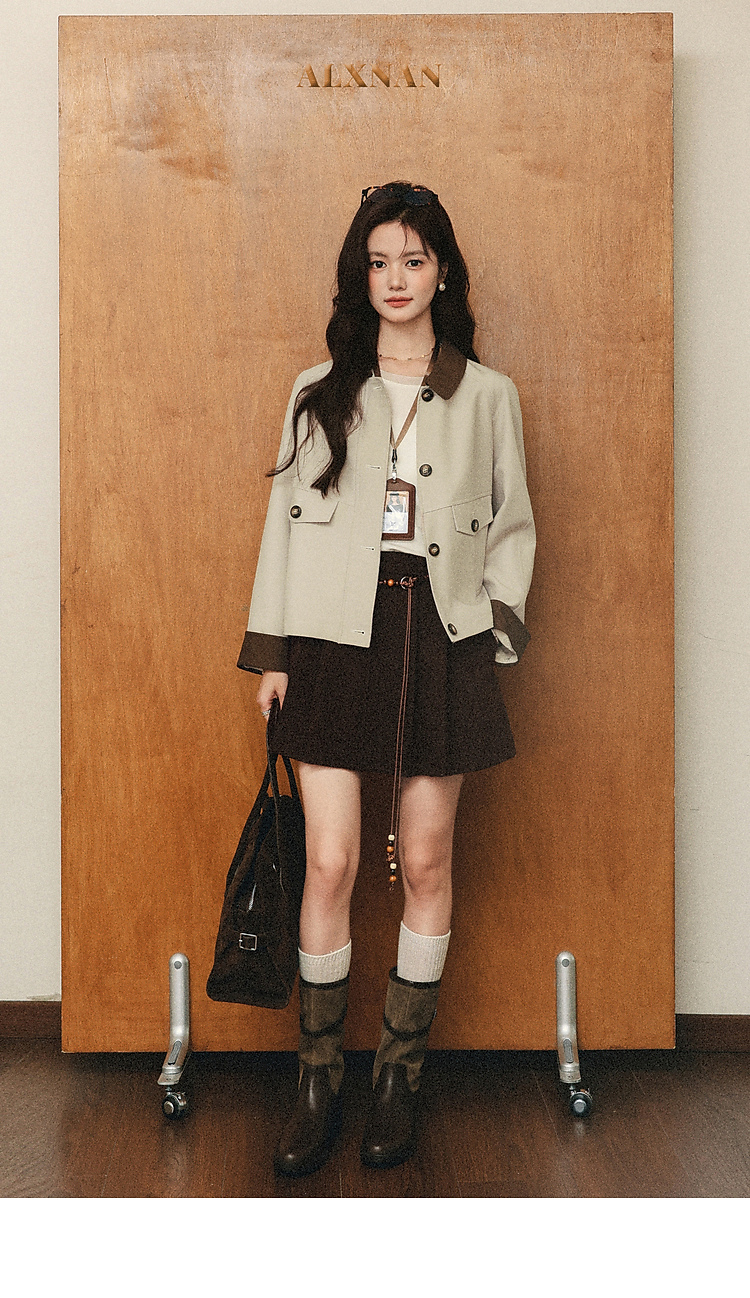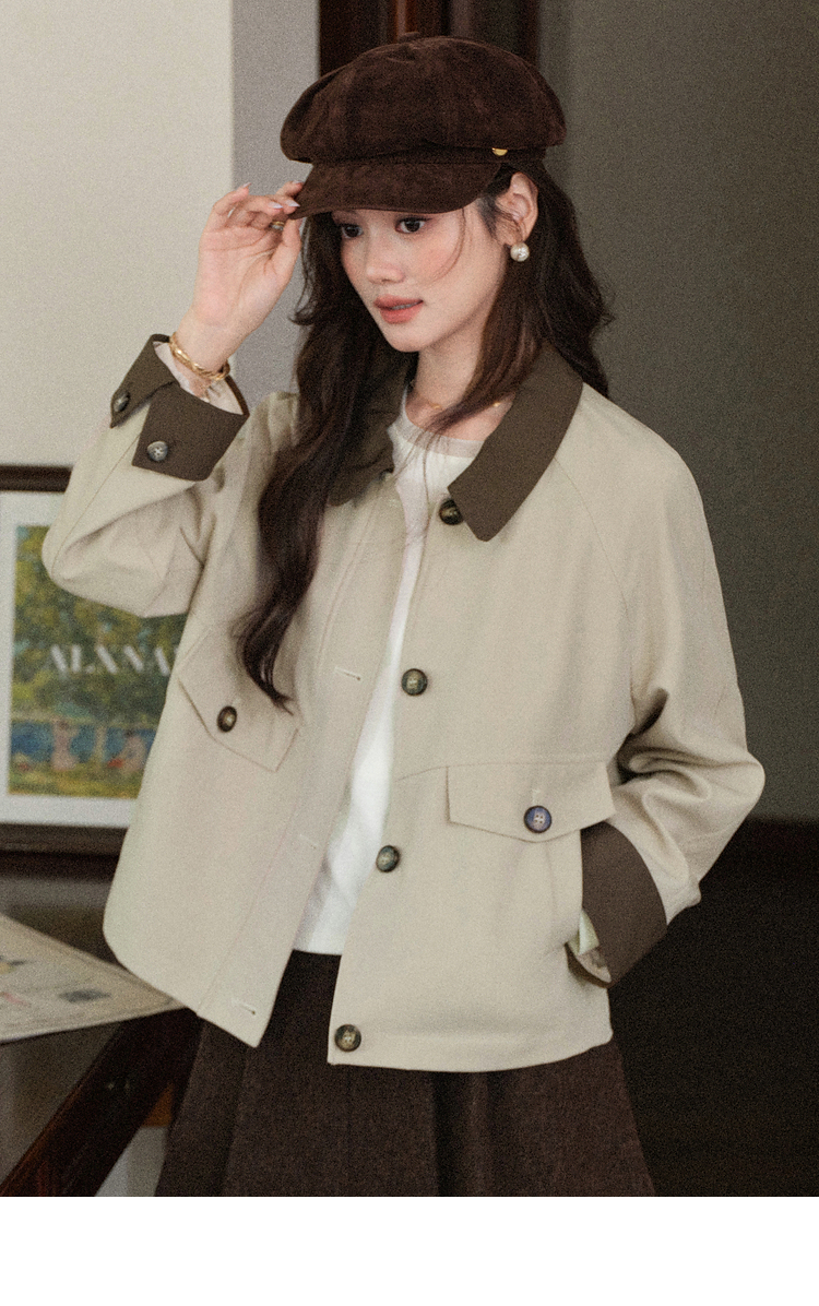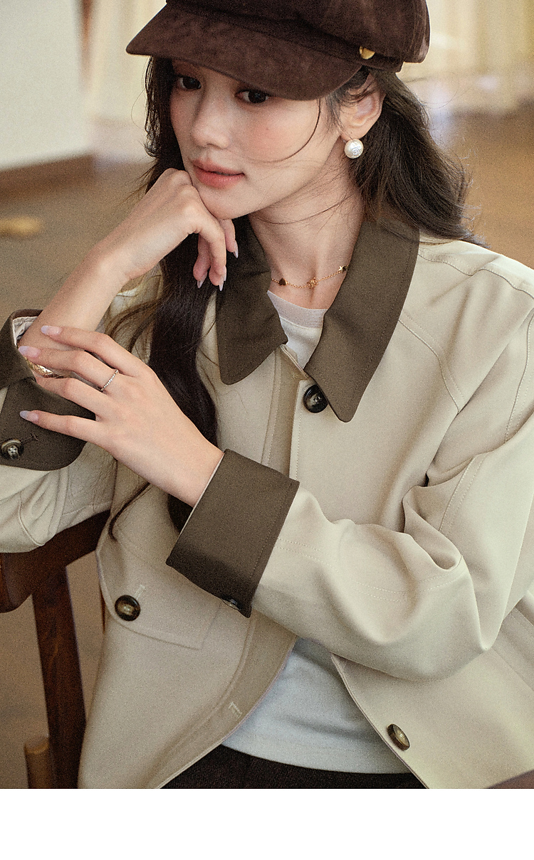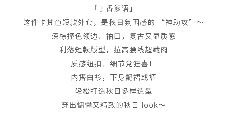 鹿向南「丁香絮语」高级卡其色短外套女秋季新款气质法式开衫上衣L57923