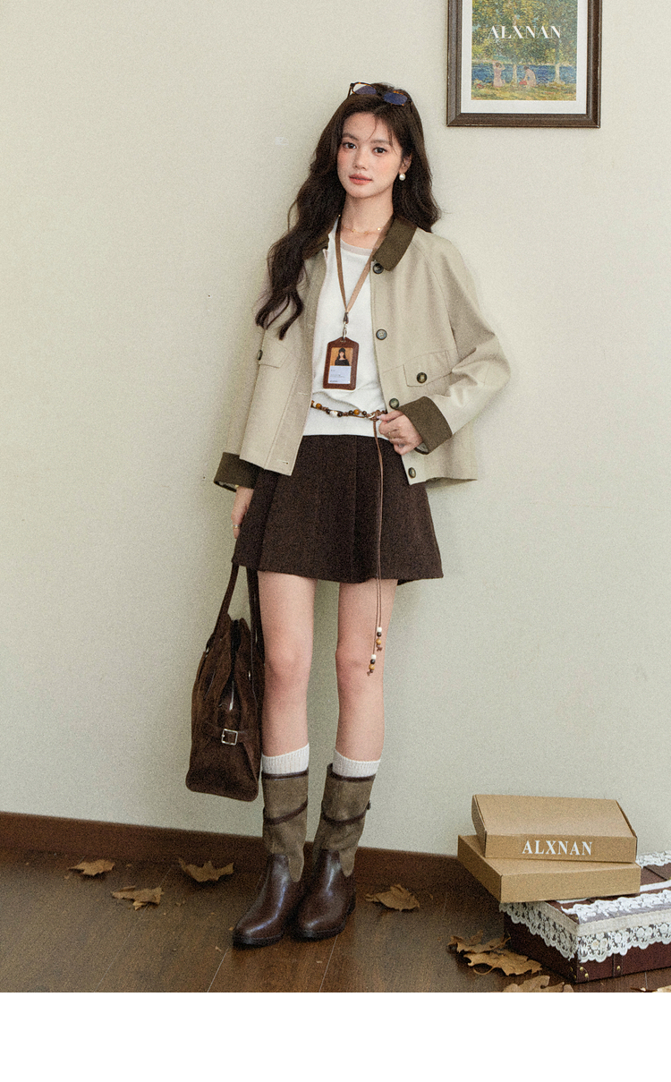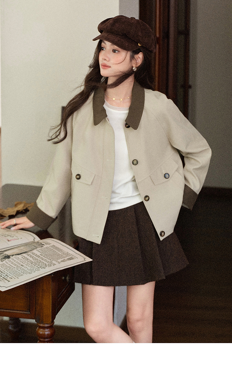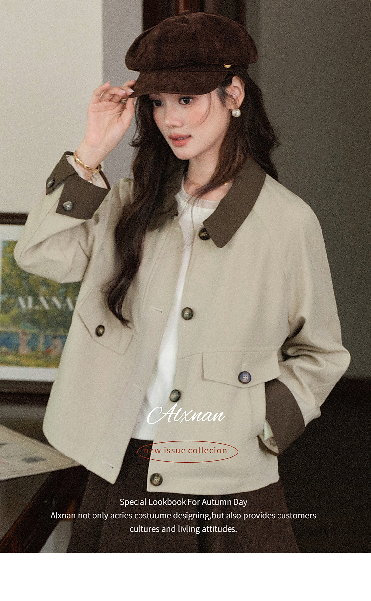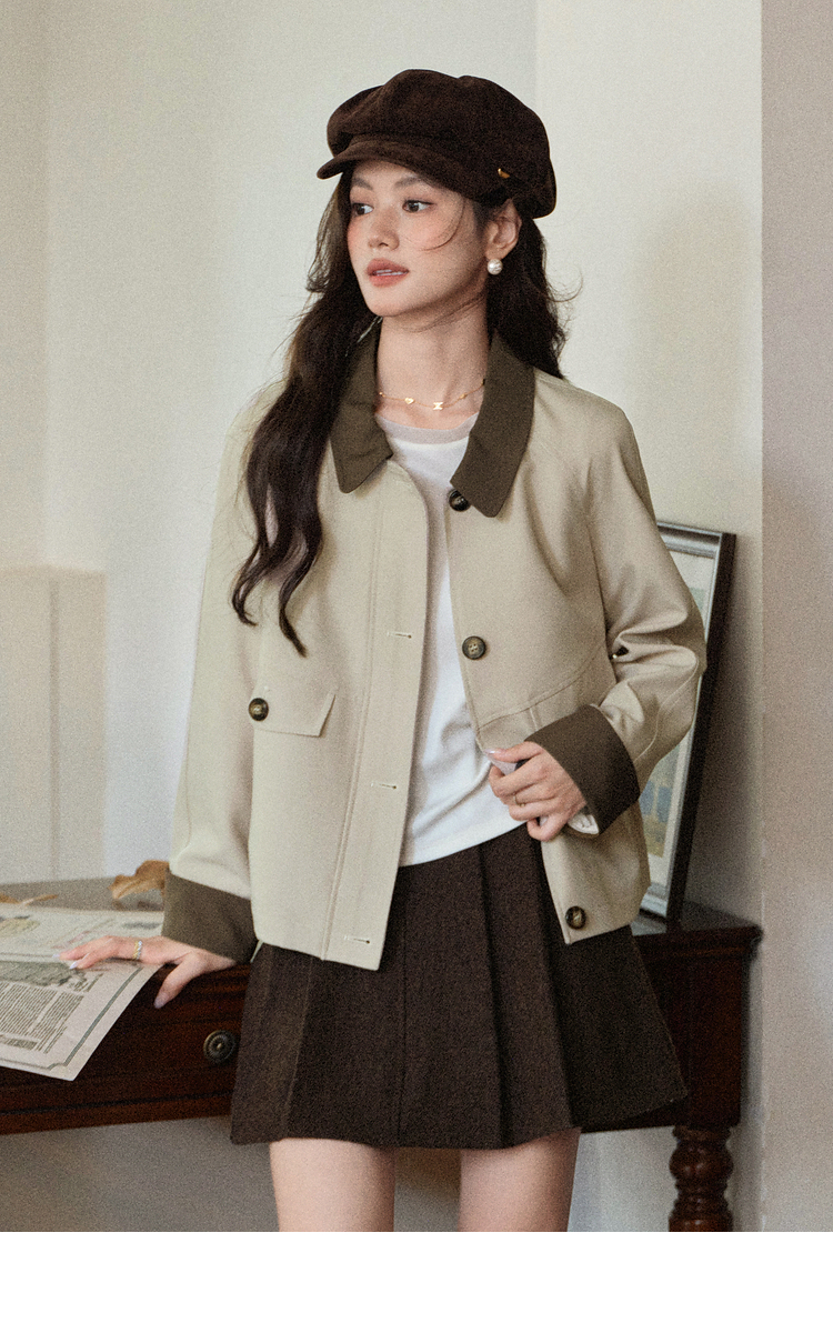 鹿向南「丁香絮语」高级卡其色短外套女秋季新款气质法式开衫上衣L57923