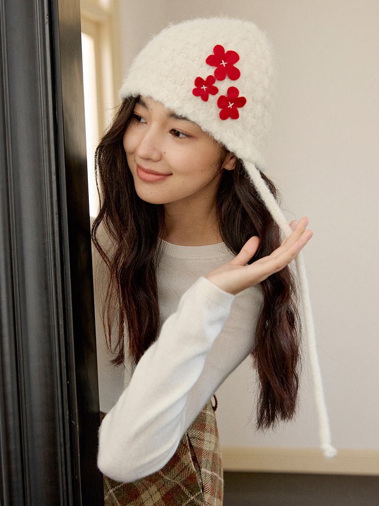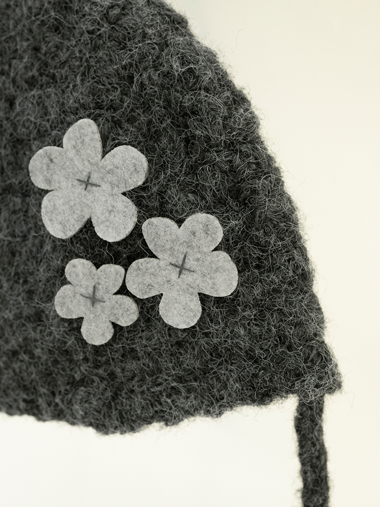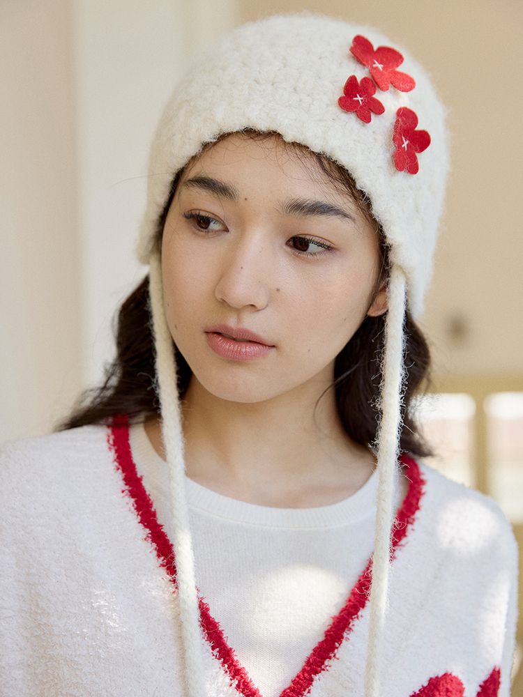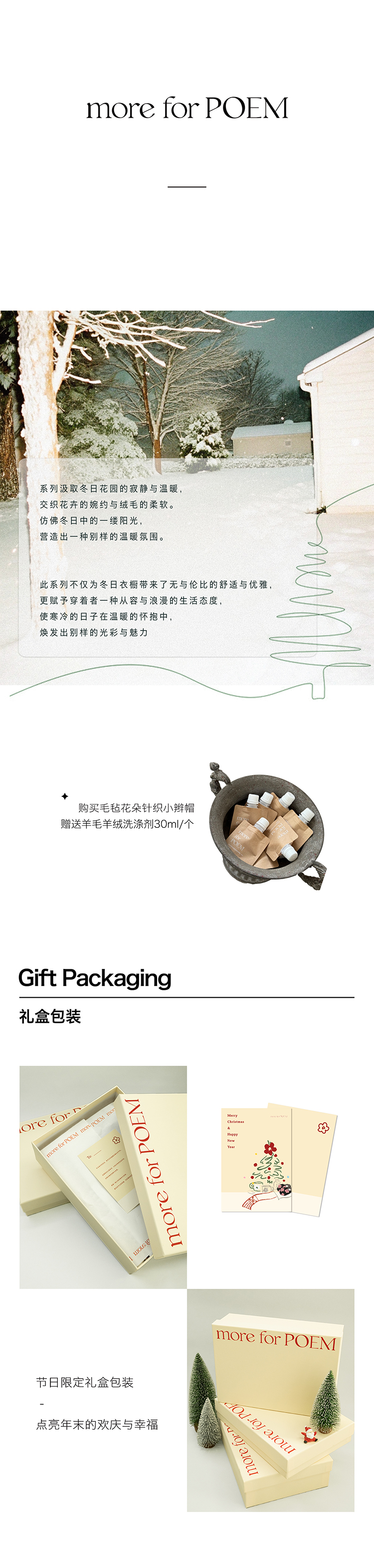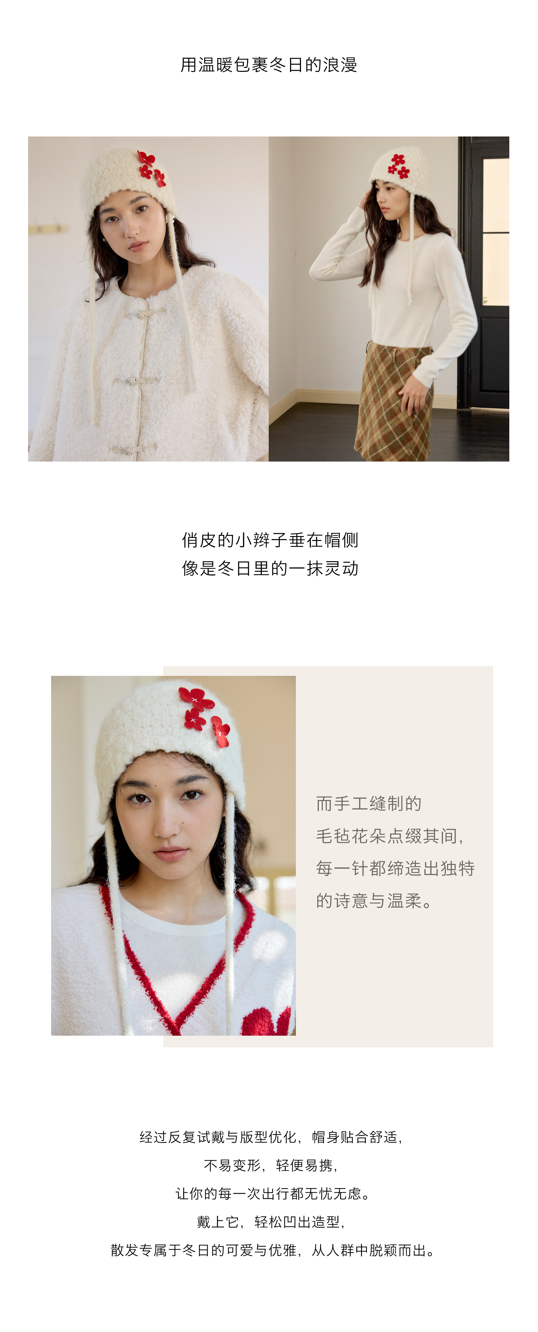 moreforPOEM 花朵毛毡羊毛针织小辫帽松软亲肤飞行毛线帽
