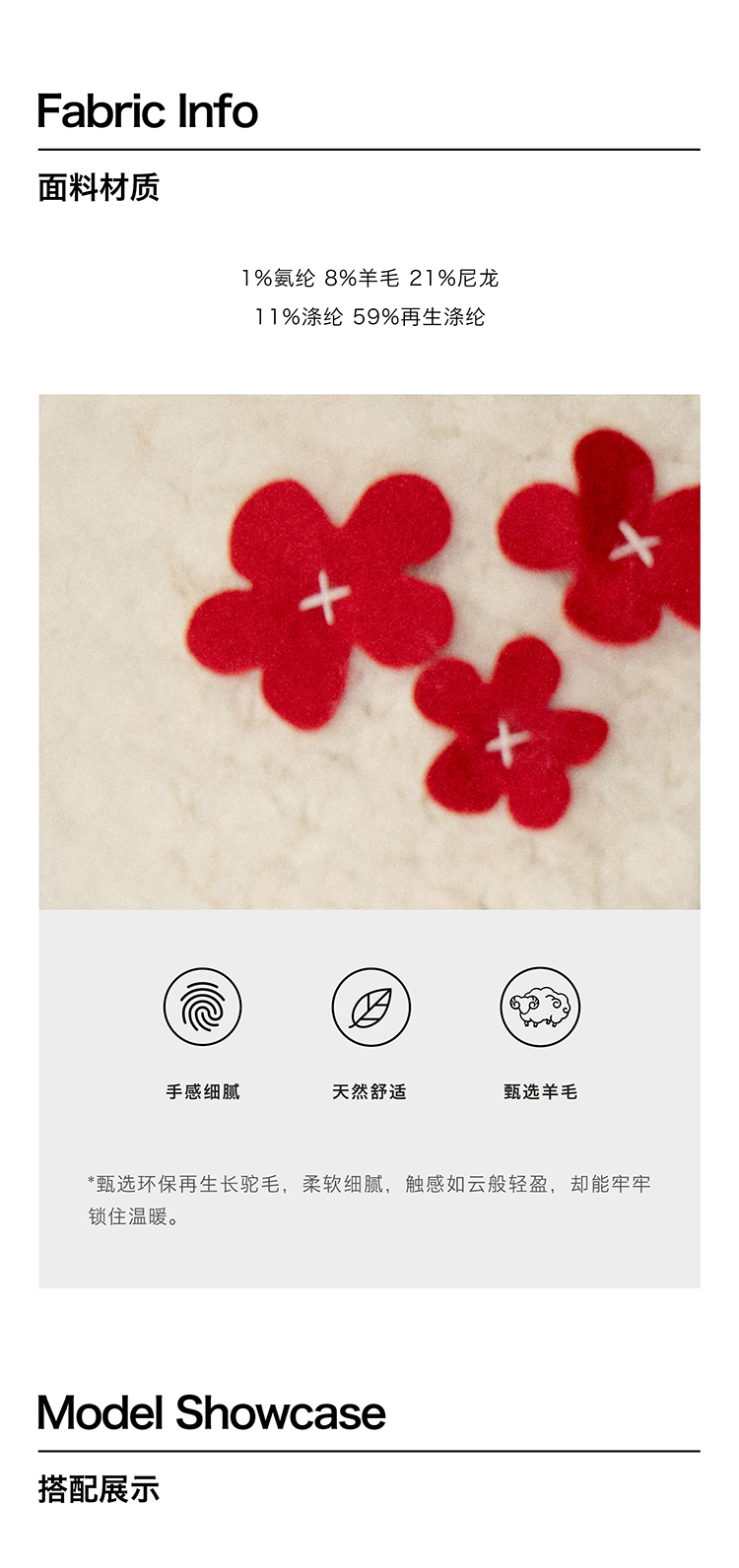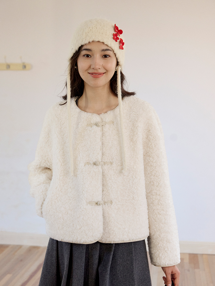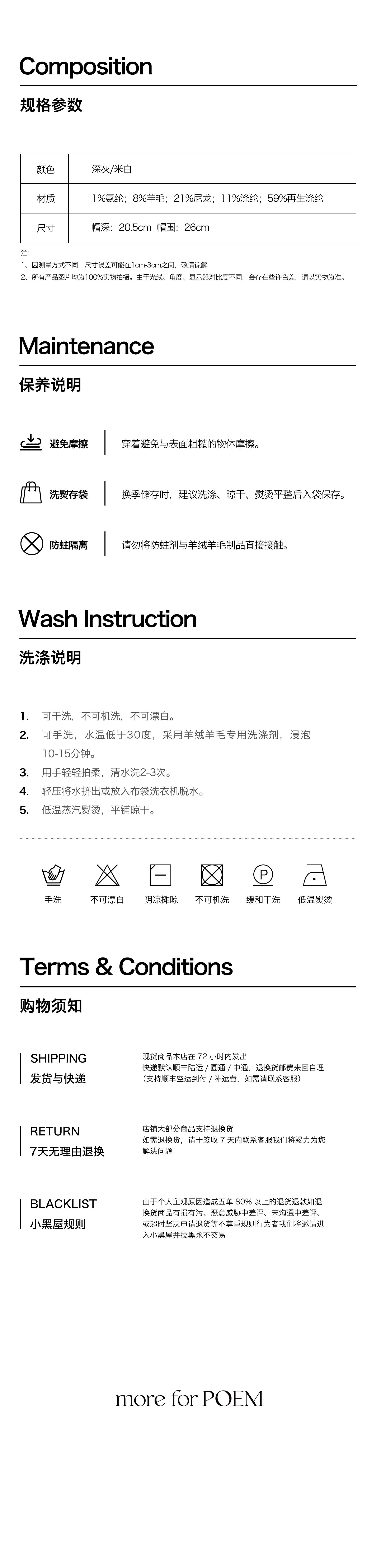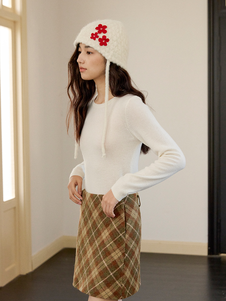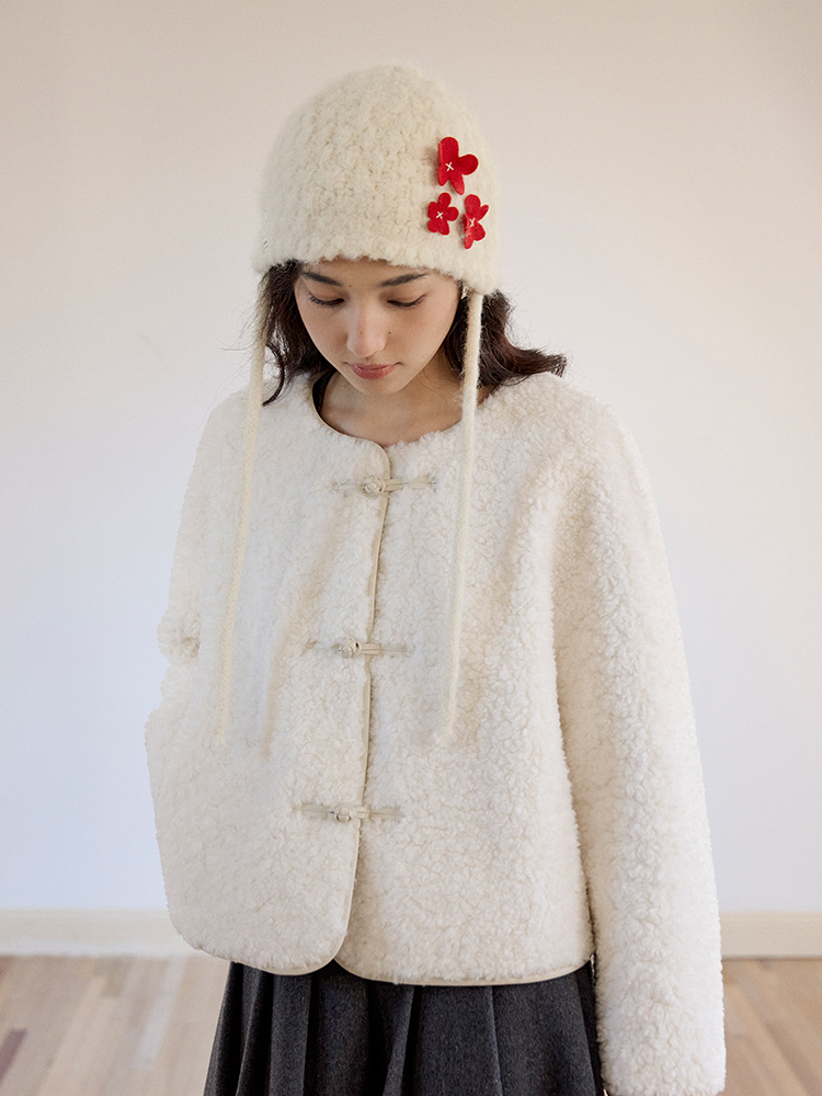moreforPOEM 花朵毛毡羊毛针织小辫帽松软亲肤飞行毛线帽