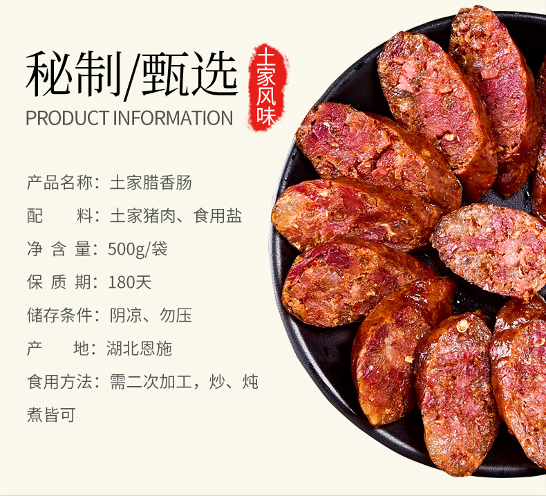 【晓姚】黑猪腊香肠 500g 中国非物质文化遗产食品