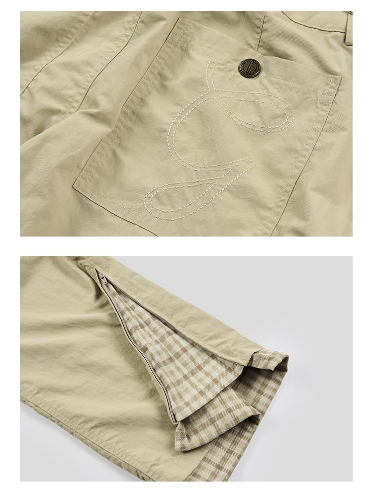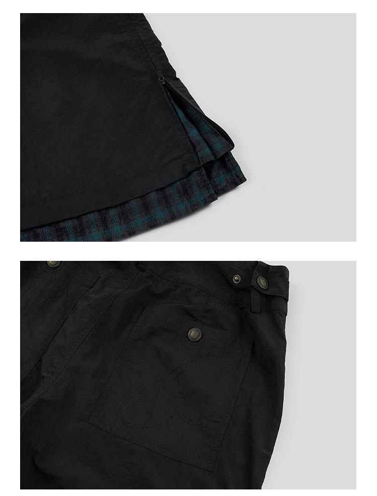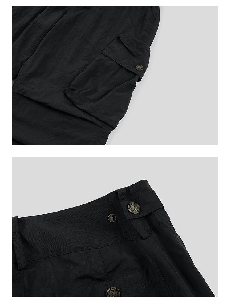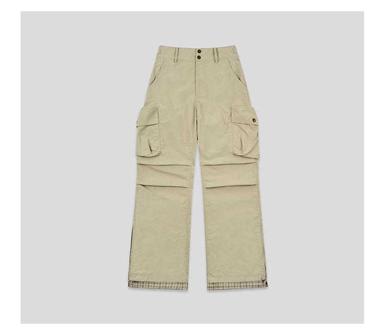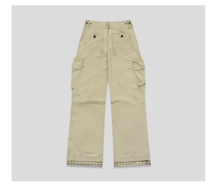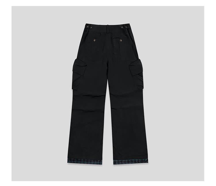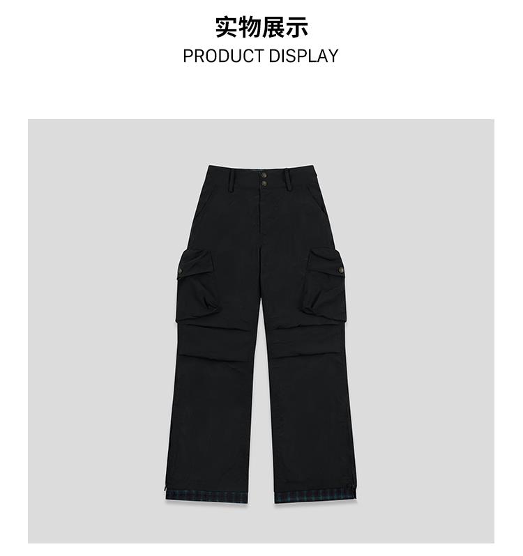 GOODBAI 多口袋微喇拼接高腰休闲裤