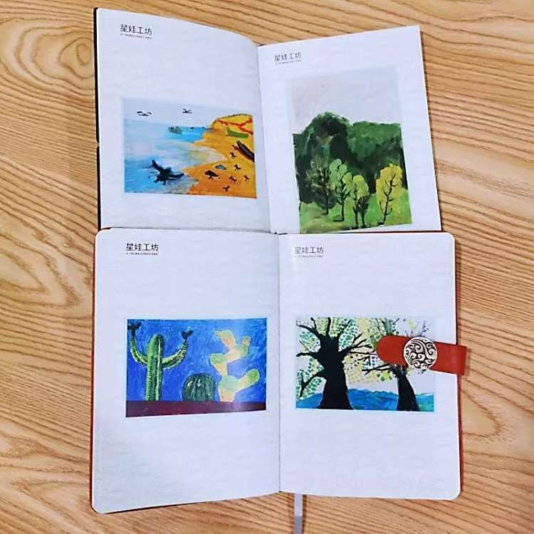 星娃工坊现有的作品分为四大系列:画作原创衍生品(帆布袋、明信片、鼠标垫、陶瓷杯等)、 创意手绘作品(画作、贺卡等)、手艺作品(花艺等)