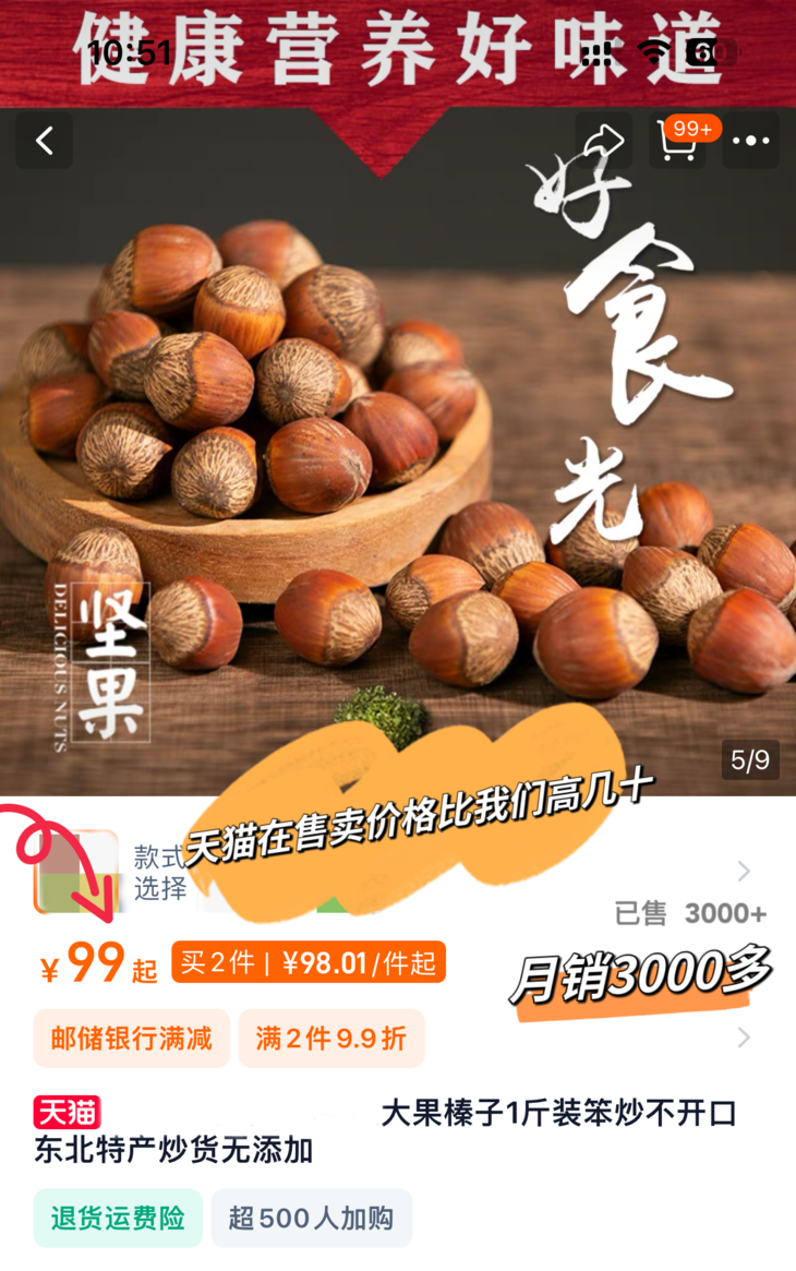 🐱某猫同类产品1斤规格售价99元,相当于100克19.8元; 🔥还口以东北大榛子今日开团248g*4袋只要59.9元,相当于每100克仅需6.04元;😍 ❗️❗️❗️不要在犹豫了,抢它抢它🤩