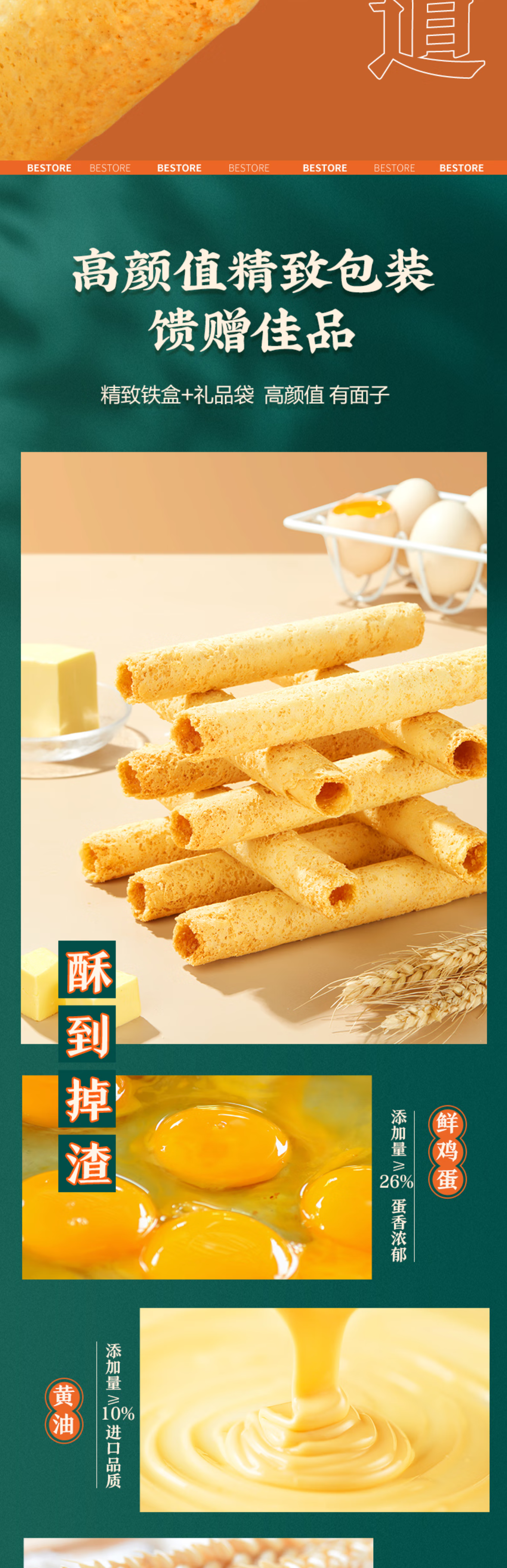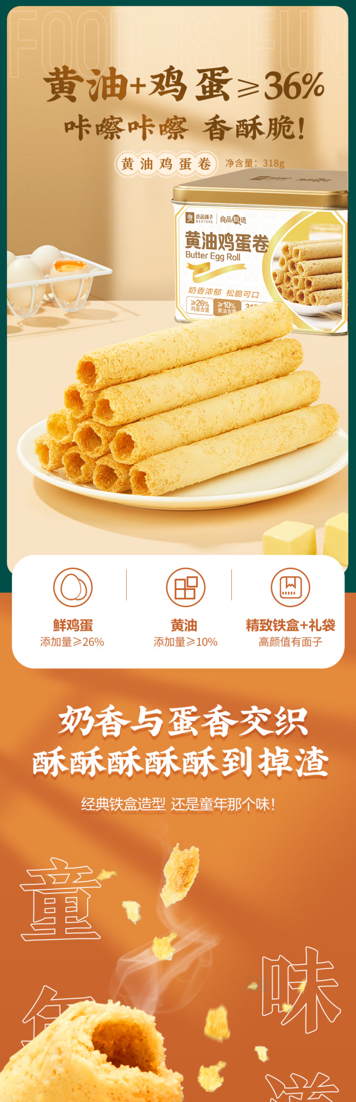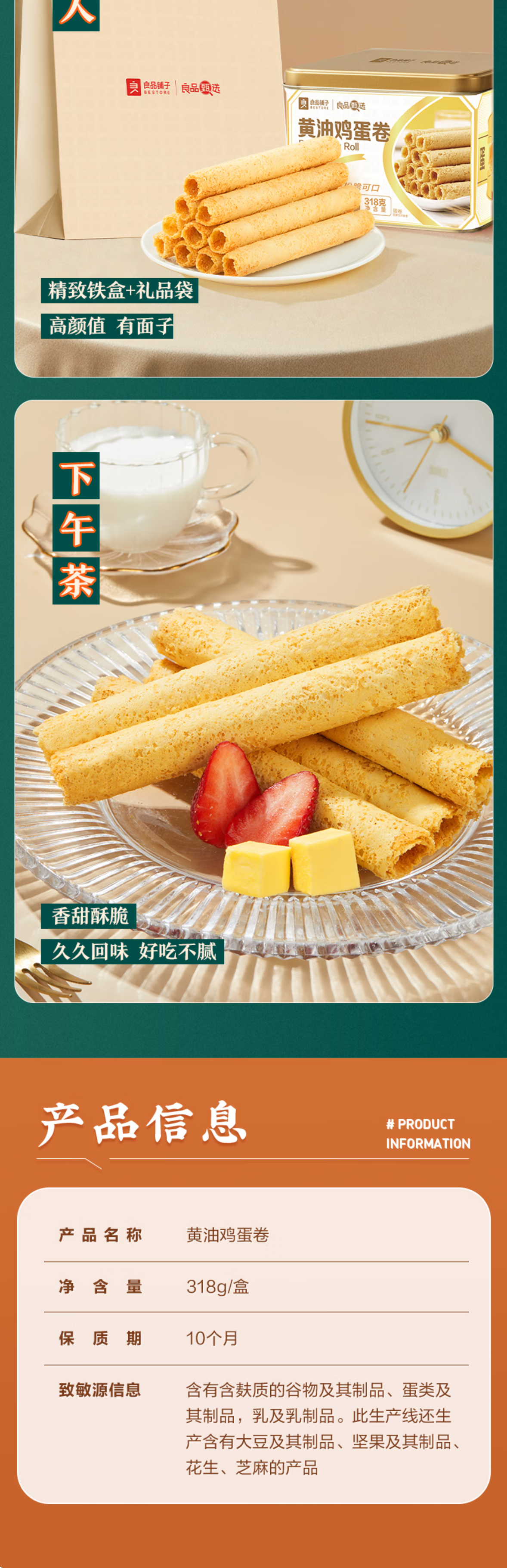 良品铺子黄油鸡蛋卷318g 精美礼盒礼品零食节日送礼美味下午茶