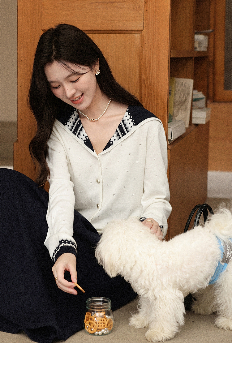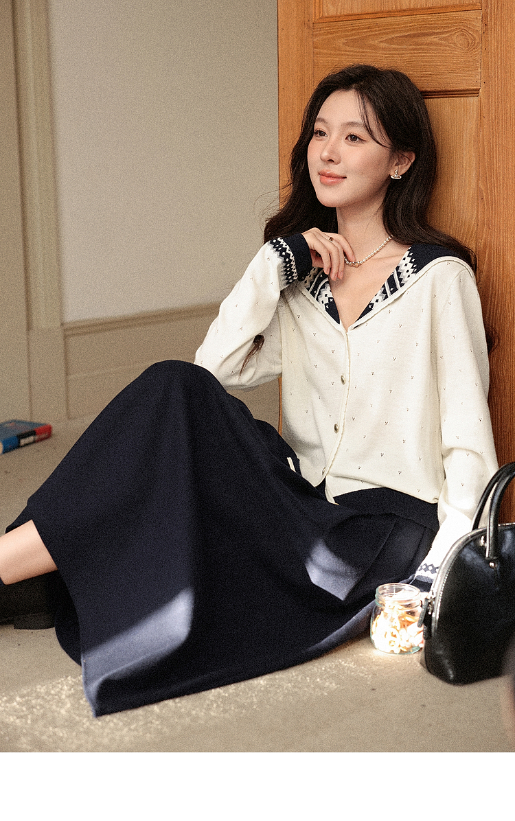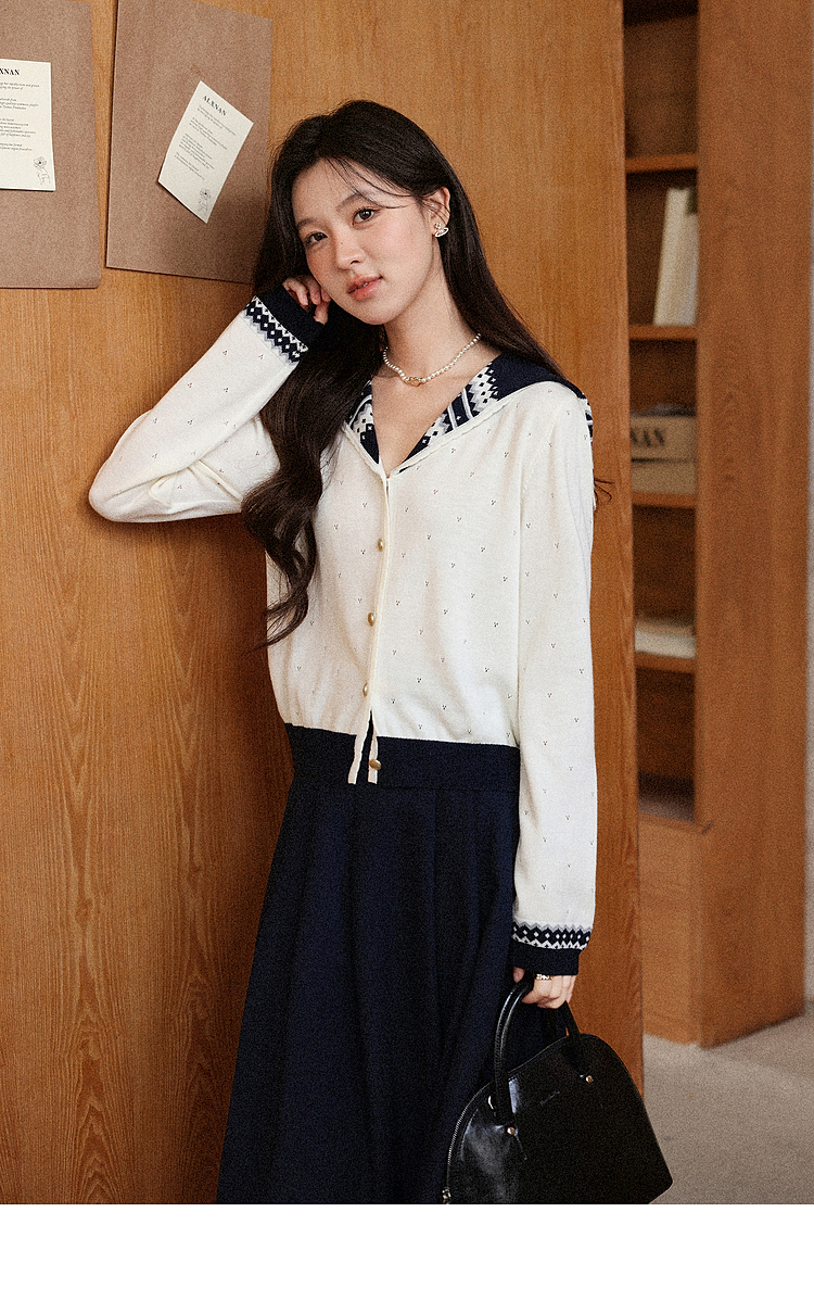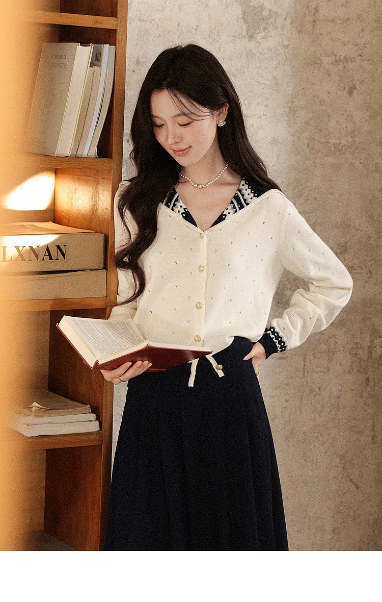 鹿向南「棉花秋雨」撞色披肩长袖针织开衫女早秋新款小众杏色上衣