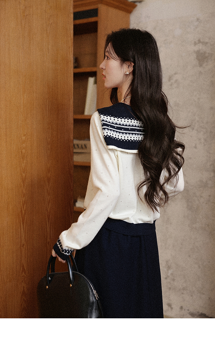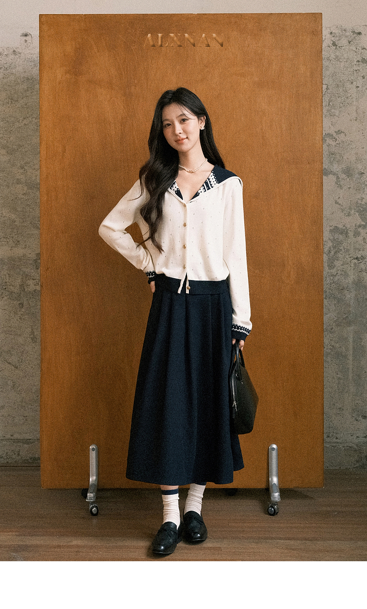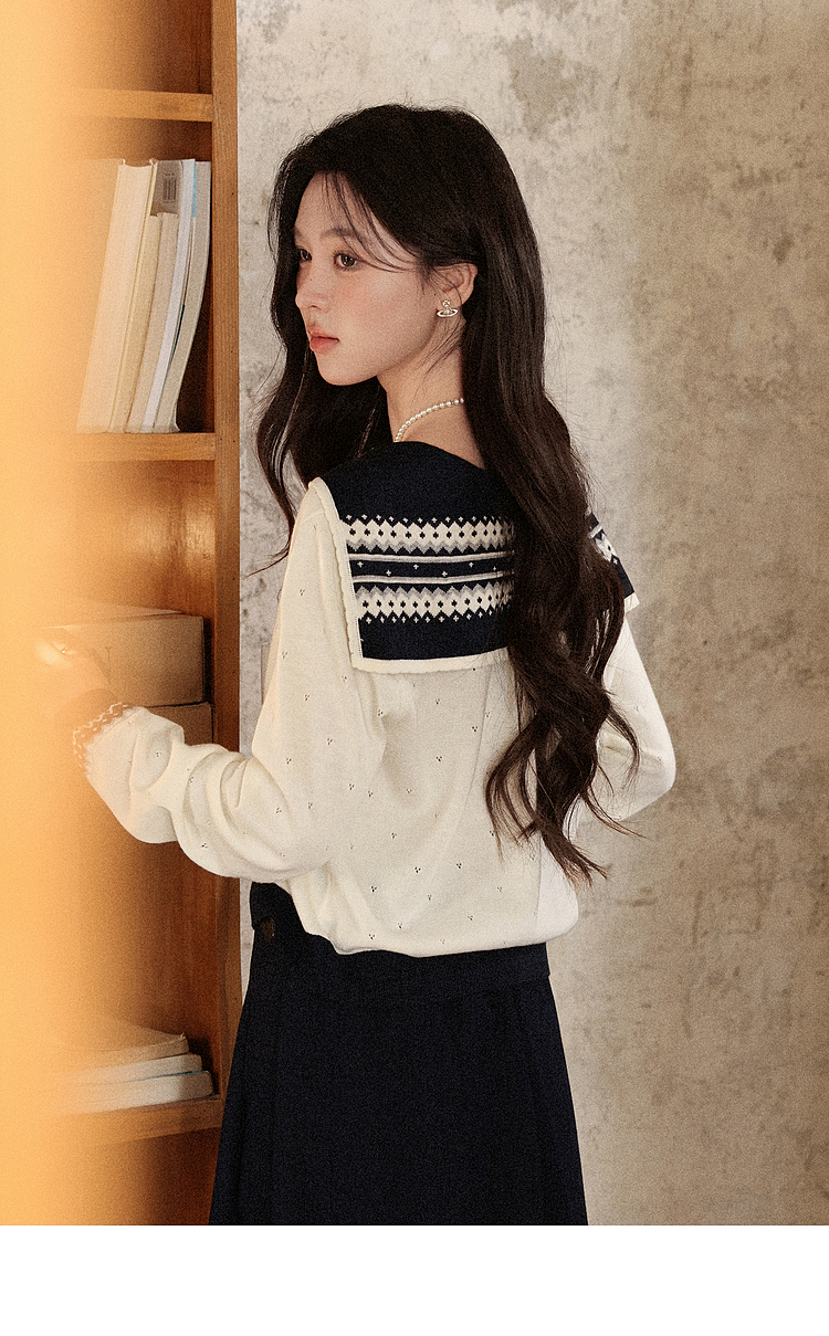鹿向南「棉花秋雨」撞色披肩长袖针织开衫女早秋新款小众杏色上衣