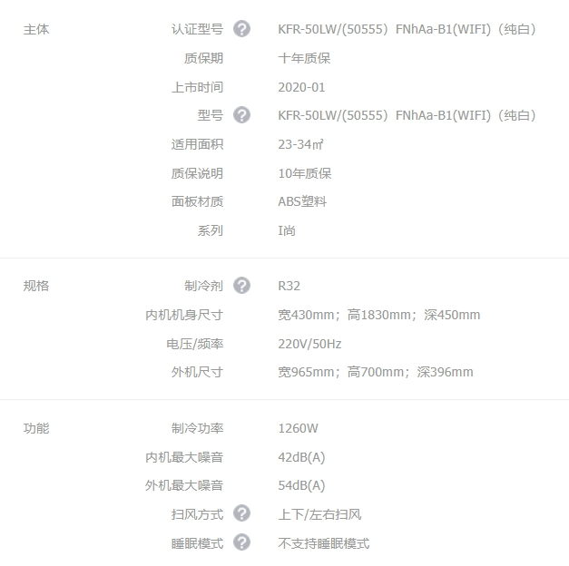 格力/空调/KFR-50LW/(50555)FNhAa-B1(WIFI)/尚变频冷暖2匹1级能效自清洁圆柱式空调