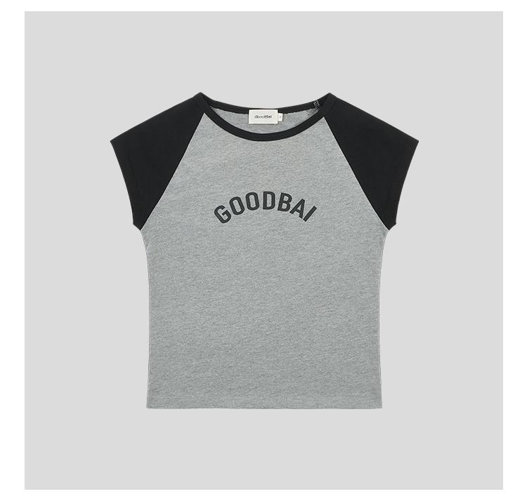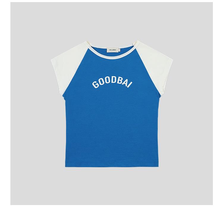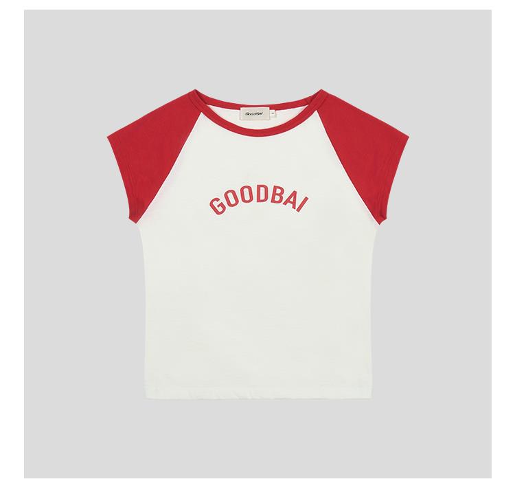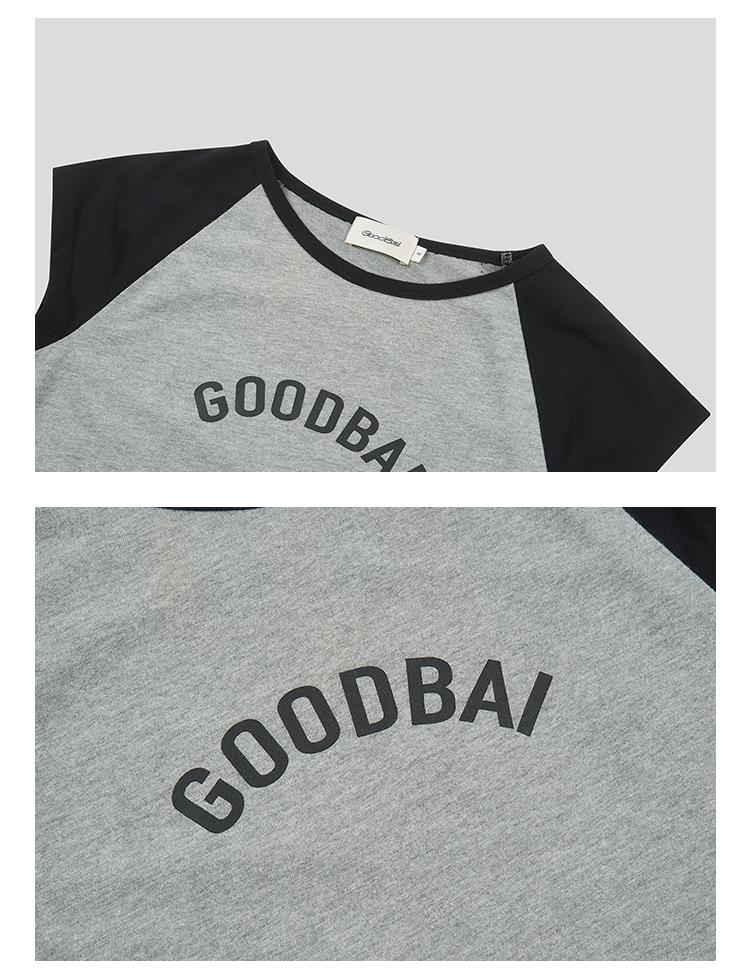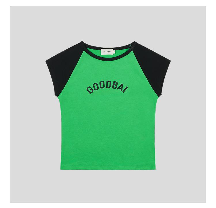 GOODBAI logo印花撞色插肩正肩收身飞袖T恤