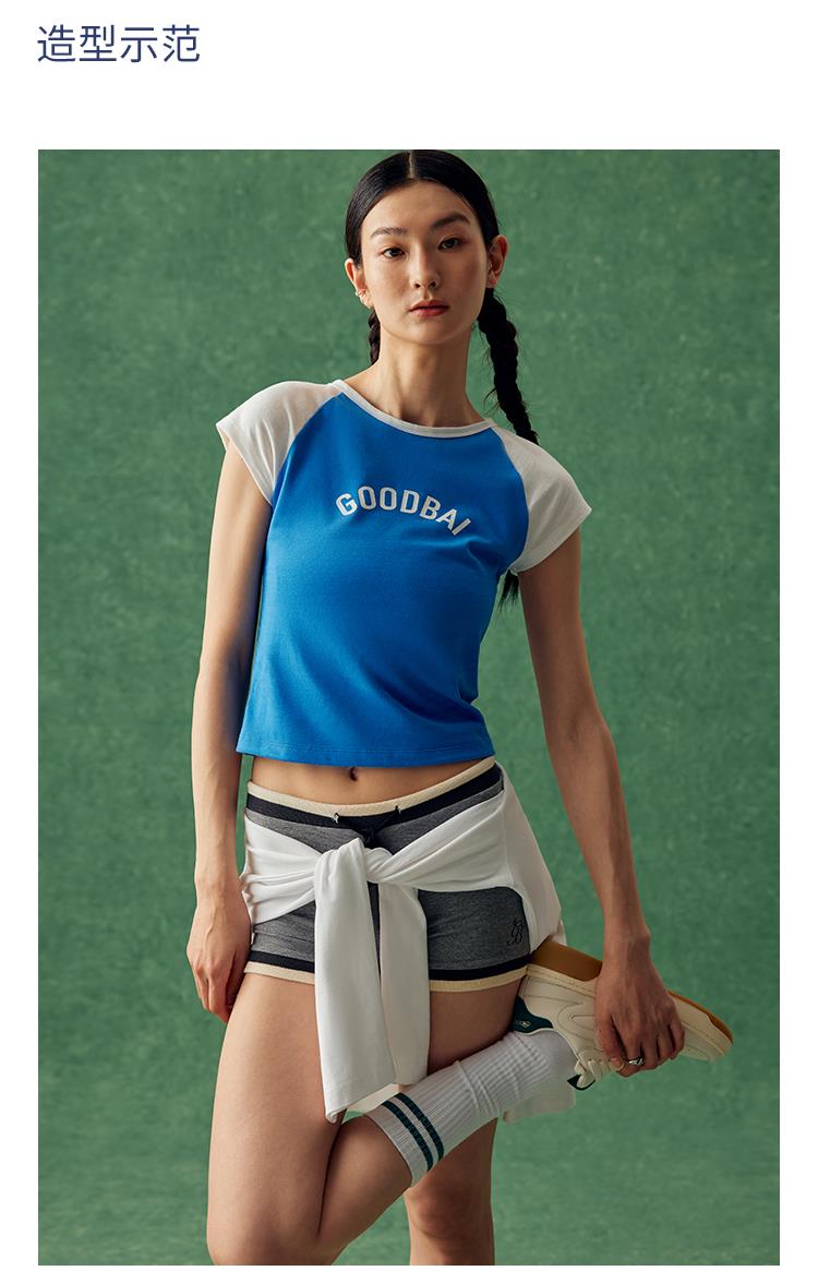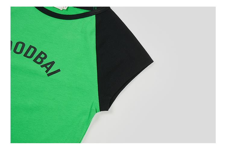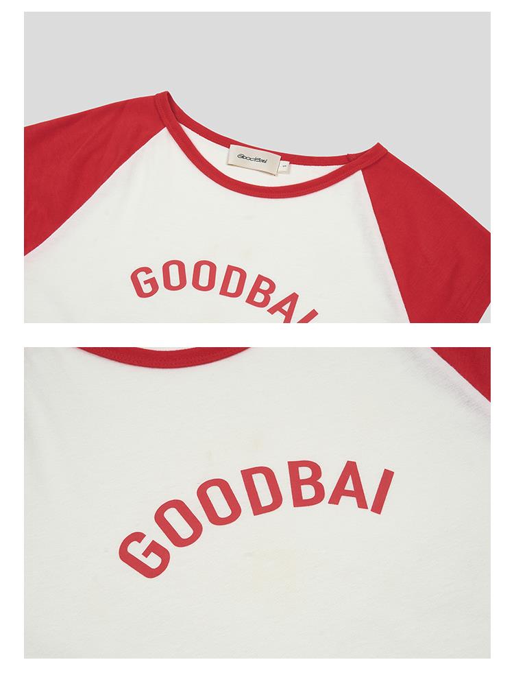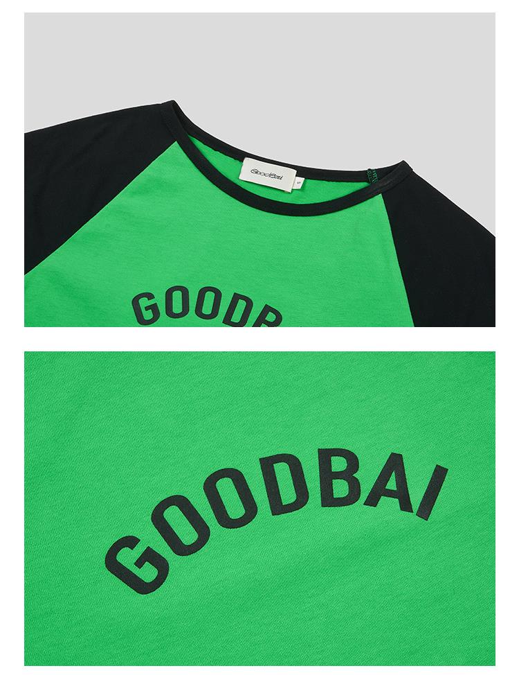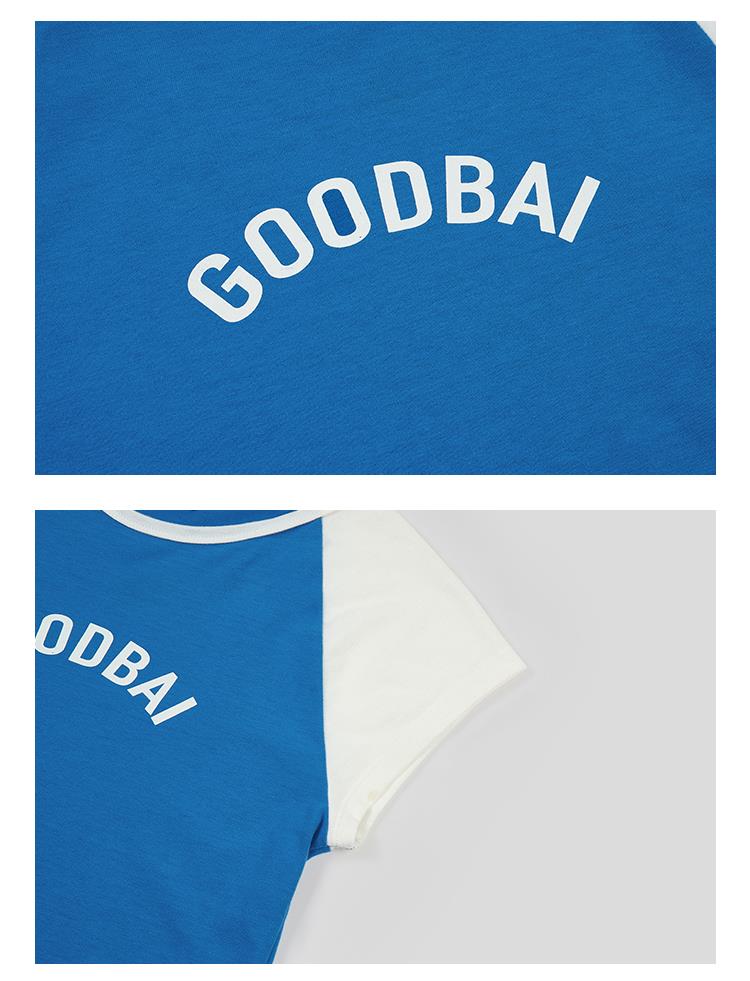 GOODBAI logo印花撞色插肩正肩收身飞袖T恤