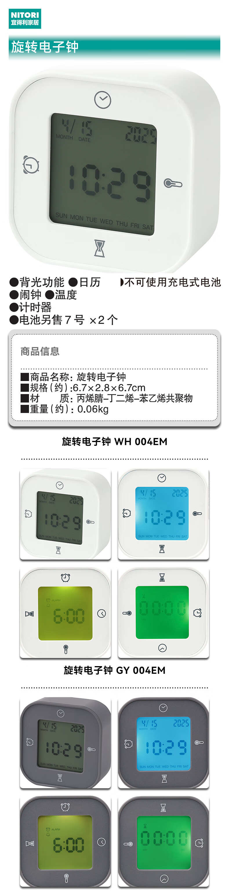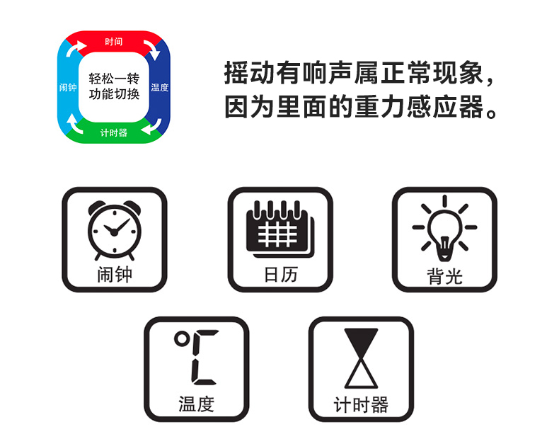 创意时尚钟旋转电子钟电子温度时间显示座钟闹钟004EM