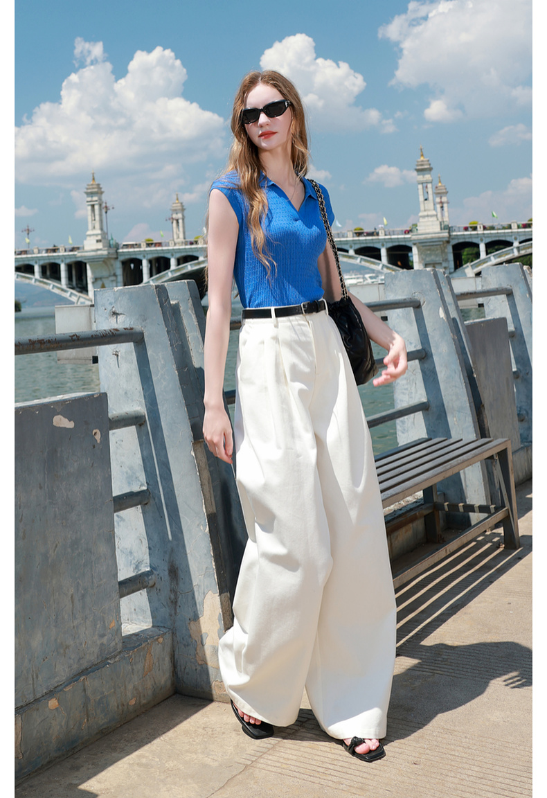 三彩2025秋季新款慵懒简约Polo领无袖针织衫修身套头气质显瘦M