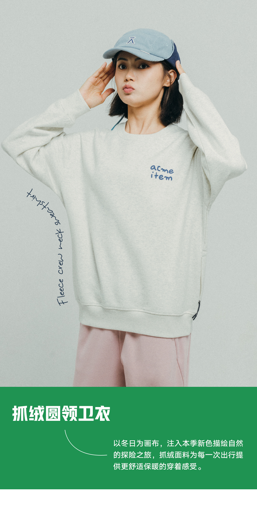 【十一破价福利】ACMEITEM爱棵米 秋冬户外亲子抓绒圆领卫衣柔软亲肤套头上衣男女GAF3310446G/GAF3310473G