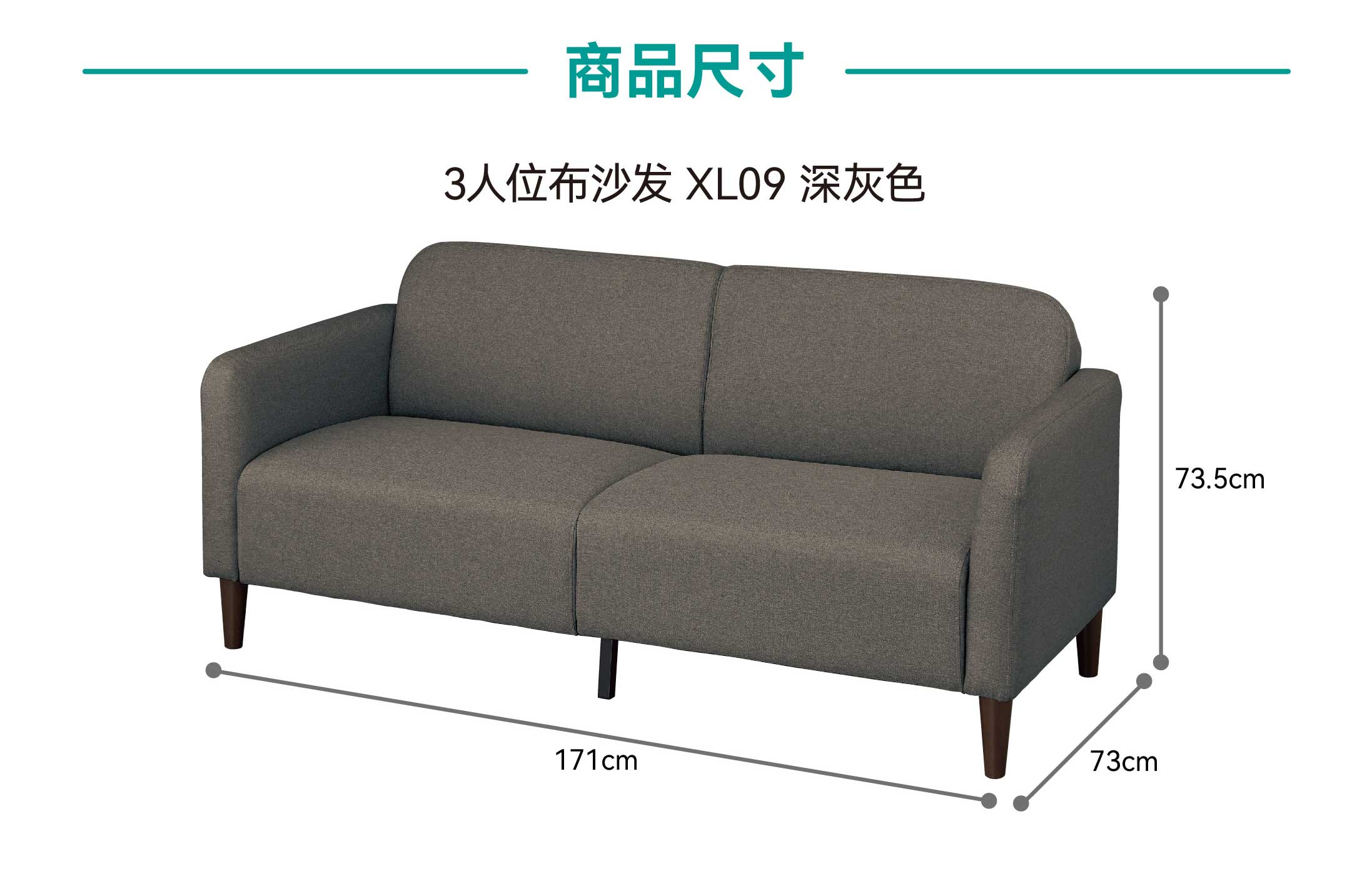 NITORI宜得利家居家具 客厅简约布艺沙发三人位布沙发 XL09