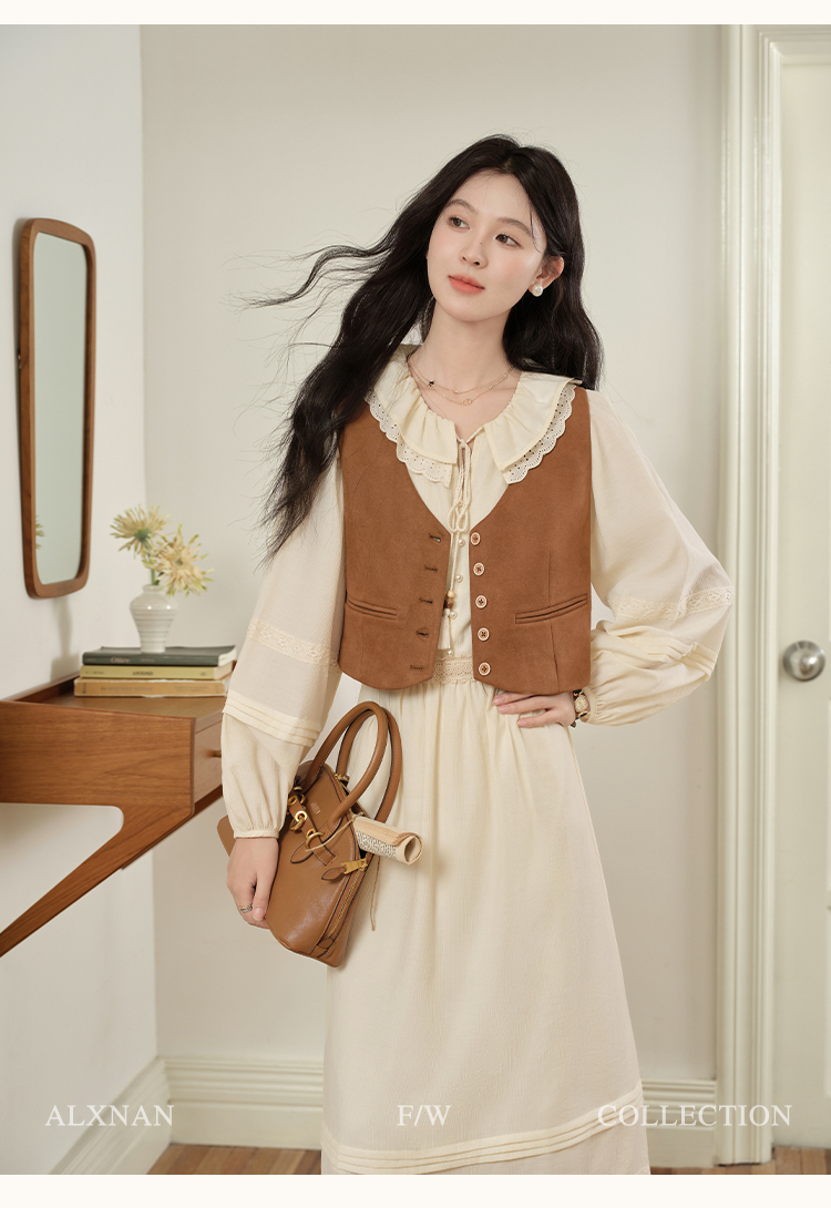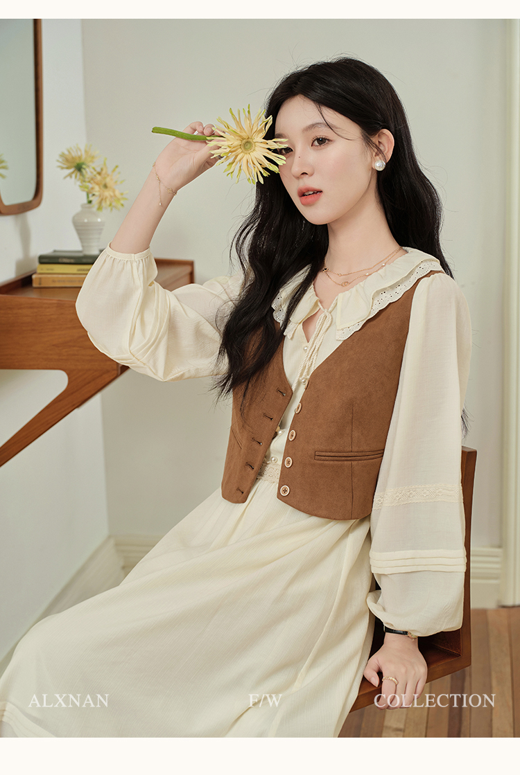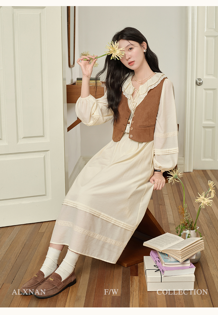 鹿向南「柔雾白月光」莱赛尔浅杏色衬衫女夏法式蕾丝拼接防晒上衣
