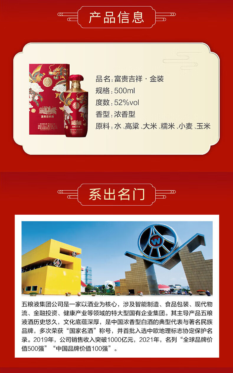 五粮液 富贵吉祥 金装 52度 浓香型白酒(单瓶装)