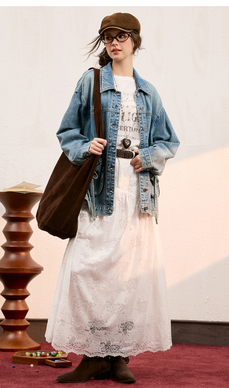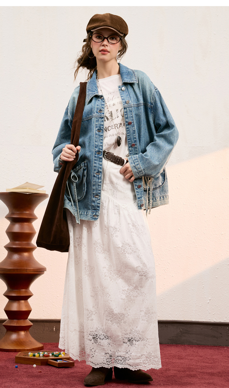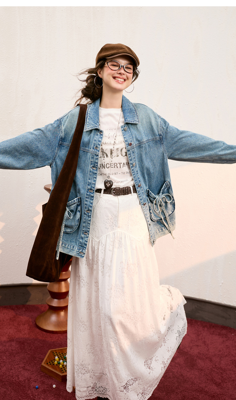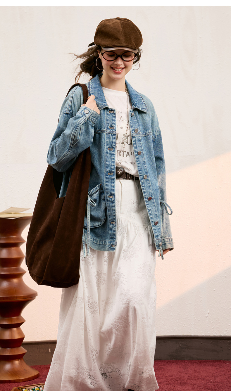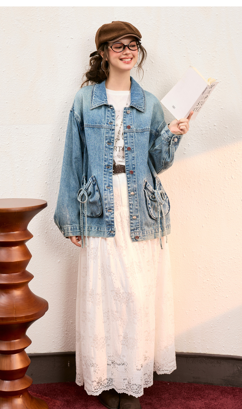 【100棉】三彩独醒2025秋季新款复古做旧宽松蝴蝶结牛仔服外套F