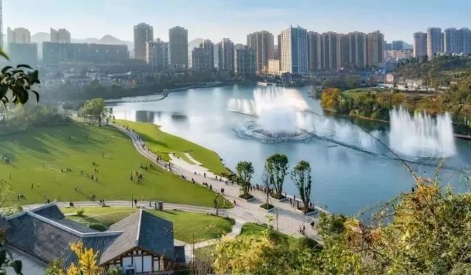观山湖公园距基地仅 800 米,观山湖区因它得名。这里四季碧水荡漾、波光粼粼,宛如城区的 “绿肺”,滋养着城市的生态与活力 。
