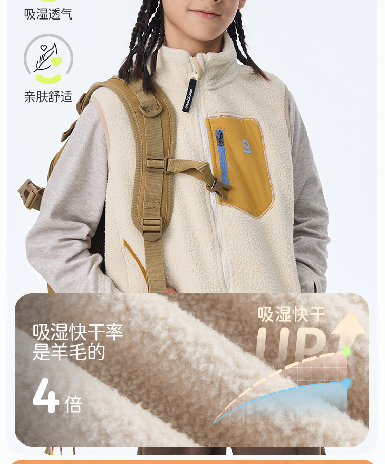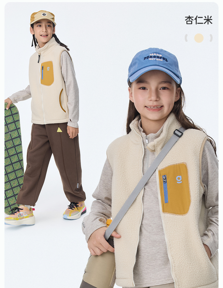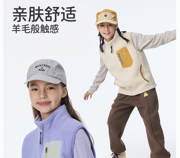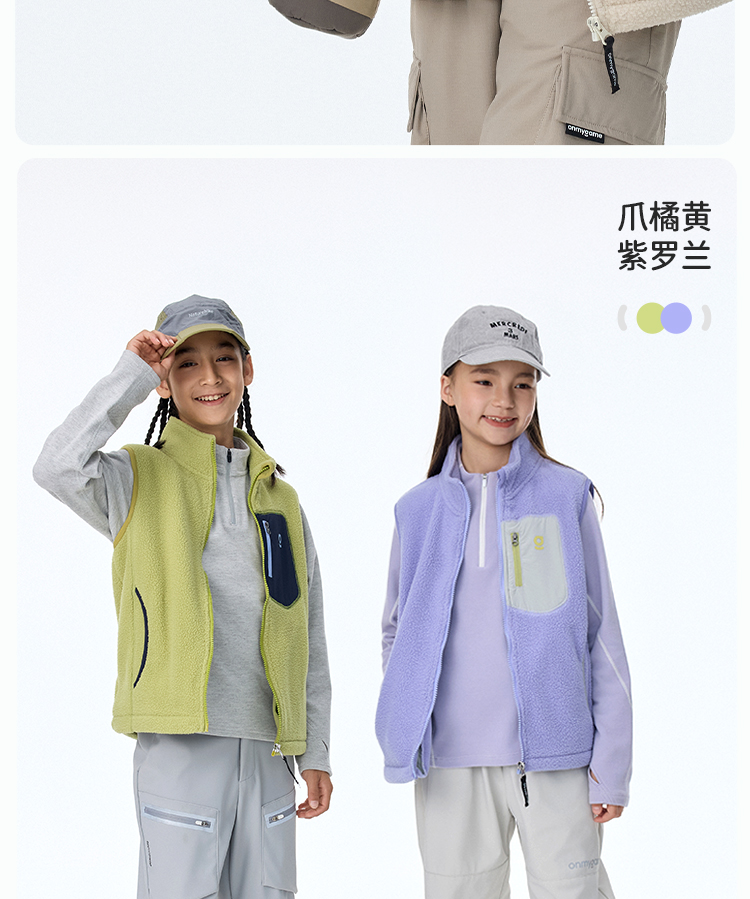 onmygame【考拉绒】男女童加厚马甲超纤云感儿童上衣户外运动外穿